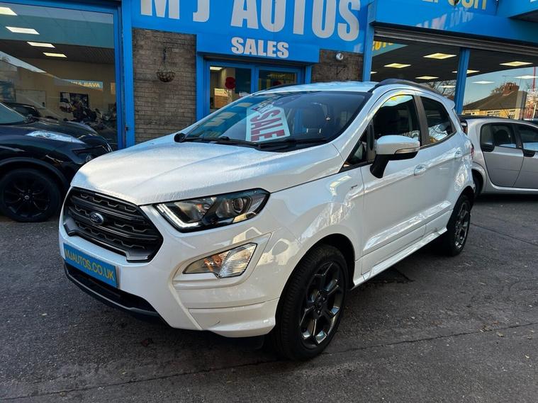 2022 Ford EcoSport ST-Line finished in Frozen White, Powered by a 1.0L Petrol Engine, adhering to Euro 6 Emission Standards so its free to drive around town! Just 27000 miles with Service History. Its equipped with the Rear View Camera Pack, which includes a Rear Camera and Rear Parking Sensors to make parking a Breeze! Satellite Navigation, the Automatic Headlights ensure optimal visibility, while the Electronic Automatic Temperature Control Air Conditioning maintains a comfortable climate inside the car. Stay connected and entertained with the Ford SYNC 3 including DAB Radio, Navigation System, featuring an 8-inch Touchscreen, Android Auto and Apple CarPlay, USB / USB-C, with Voice Control, Quick Clear Front Windscreen, Alloy Wheels and really does drive super with excellent fuel economy, Supplied with a NEW MOT. Feel at ease buying from a trusted company. Established over 45 years! Require finance?? This can all be done online or in the showroom! Part-Exchange Available, Got a car or van to Part-Exchange?? Ask us for a quote! Contact us by phone, email or social, or just pop in and see us!! Buy With Confidence From MJ AUTOS THE FAMILY BUSINESS ESTABLISHED IN 1979. VIDEO VIEWINGS AVAILABLE - We make it easy for you to buy your new car online- VIEW ~ RESERVE ~ COLLECT or DELIVER