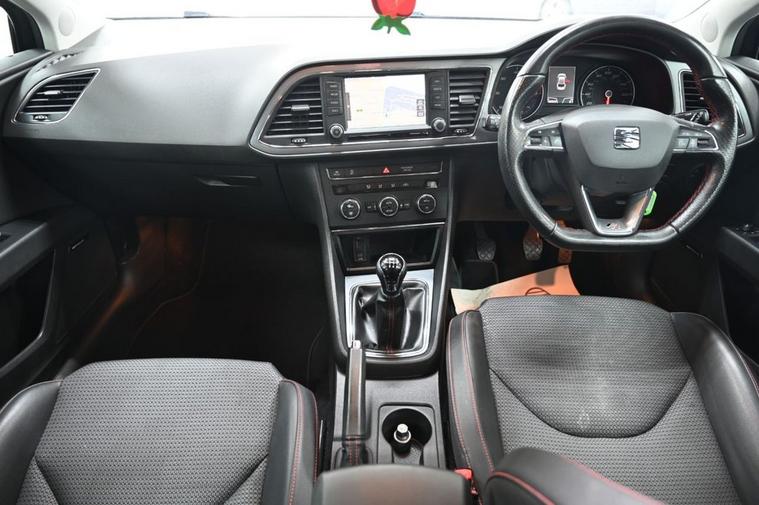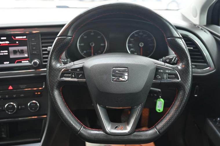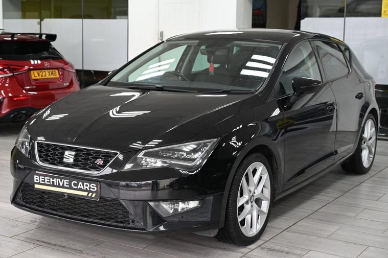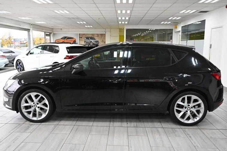 DRIVE AWAY TODAY OR HOME DELIVERY TO YOUR DOORSTEP FINANCE & PART EXCHANGE ARRANGED ONLINE** 7 DAY MONEY BACK GUARANTEE** Nice car & drive Seat Leon 2.0 tdi fr in metallic black with full service history 1 owner from new sat nav dab radio bluetooth media traffic set up usb aux seat surround sound half leather seats with armrest electric heated folding door mirrors rear parking aid sensors eco normal sport individual driving modes flat bottom fr steering wheel alloys privacy