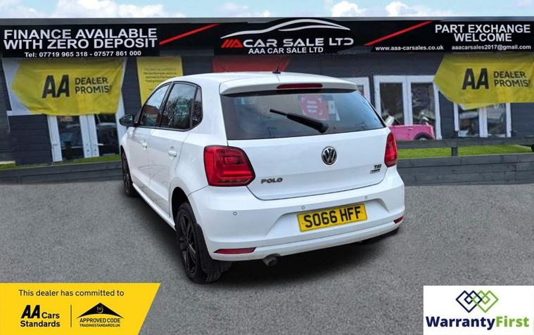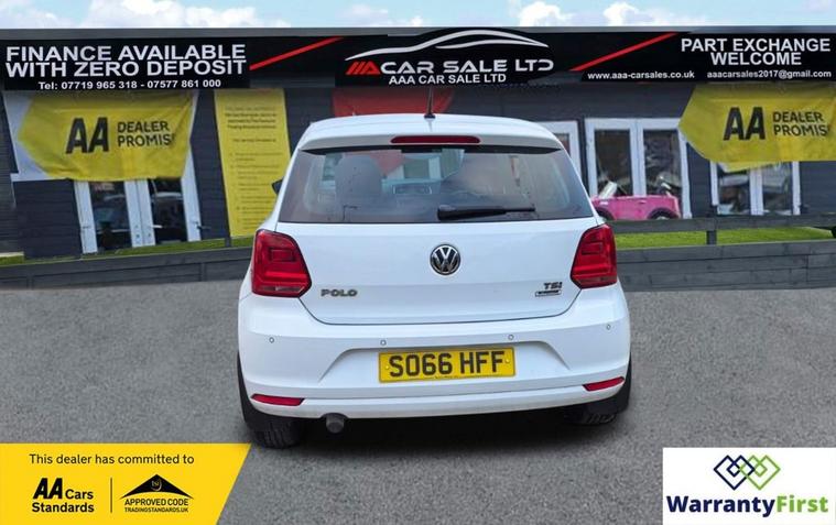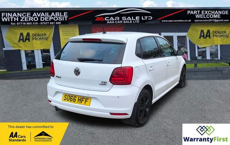 **AAA CAR SALES DARLINGTON LTD HAVE THE PLEASURE TO PRESENT THIS VOLKSWAGEN POLO 1.2 TSI BlueMotion Tech Match Hatchback 5dr Petrol Manual Euro 6 (s/s) (90 ps) IN PURE WHIRE PAINTWORK, SERVICE HISTORY - SERVICED AT 9K, 18K, 21K, 28K, 45K AND SERVICED BY OUR TEAM AT 94K....ALL OUR CARS GO THROUGH 72 POINT INSPECTION, ALL OF OUR CARS COME WITH 12 MONTHS AA BREAKDOWN COVER, UP TO FRESH MOT WITHOUT ADVISORIES, INTERIM SERVICE, HPI CHECKED VIA EXPERIAN, 3 MONTHS WARRANTY WITH THE OPTION TO UPGRADE ***AUTOTRADER CUSTOMER SERVICE AWARD 2019, 2020, 2021, 2022, 2023 and 2024 YEAR ON YEAR***, WE ARE OPEN 7 DAYS A WEEK FOR YOUR CONVIENIENCE, CALL 01325950841 OR EMAIL US AT hello dealer's website or visit our website dealer's website Clean bodywork, Cloth interior - Clean Condition, Tyre condition good, YOU CAN BUY WITH FULL CONFIDENCE FROM AAA CARS CHECK OUR AUTOTRADER REVIEWS FOR FULL PEACE OF MIND,