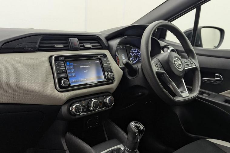 Compact, stylish, and efficient the Nissan Micra 0.9 IG-T Acenta is a smart choice for drivers who value modern design, low running costs, and an enjoyable driving experience. Powered by a 0.9-litre turbocharged petrol engine, it offers a perfect balance of performance and economy, making it ideal for both city commutes and longer journeys. The Acenta trim adds a host of convenient features and a premium feel. Inside, youll find a 7-inch touchscreen infotainment system with Apple CarPlay and Android Auto, Bluetooth connectivity, cruise control, and air conditioning for everyday comfort. The cabin is well designed with quality materials and a sporty, modern look. On the outside, the Micra stands out with its sharp lines, LED daytime running lights, and 16-inch alloy wheels, giving it a dynamic and confident presence on the road. With advanced safety systems such as lane departure warning, traffic sign recognition, and hill start assist, this Micra ensures peace of mind wherever you go. Key Features: 0.9 IG-T turbocharged petrol engine (approx. 90 bhp) 5-speed manual gearbox 7 touchscreen with smartphone connectivity Cruise control and air conditioning Bluetooth, USB, and DAB radio LED daytime running lights and 16 alloy wheels Lane departure warning and traffic sign recognition Excellent fuel economy and low insurance costs The Nissan Micra 0.9 IG-T Acenta combines bold styling with efficient performance and modern technology the perfect all-round hatchback for everyday driving.