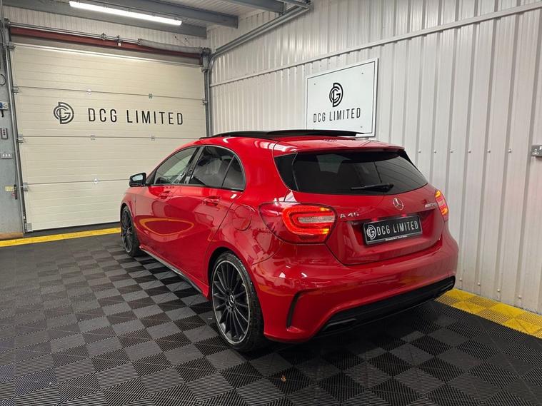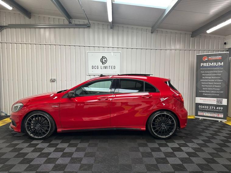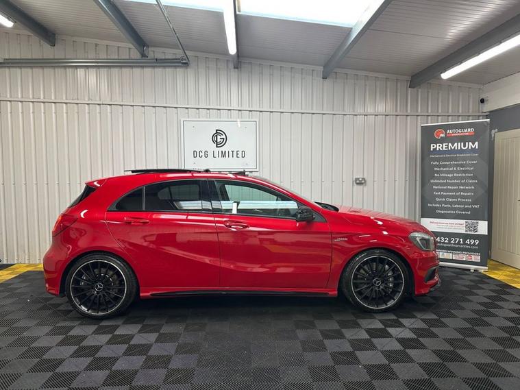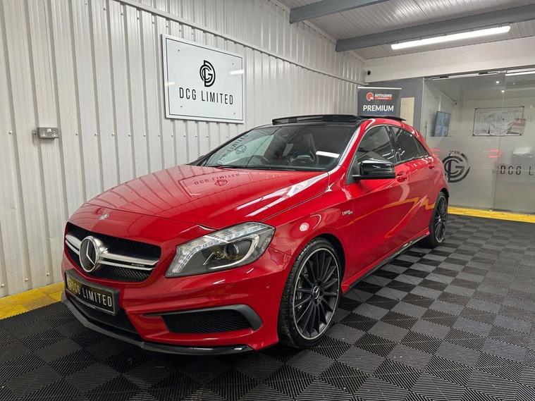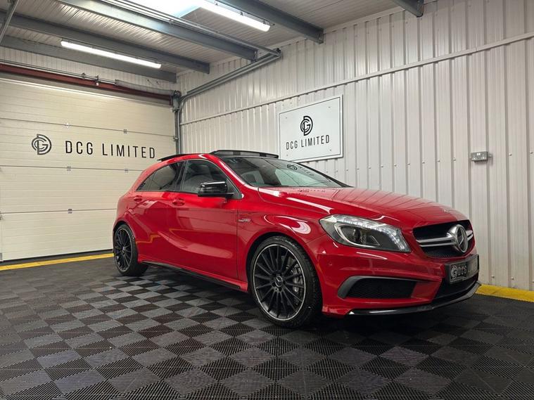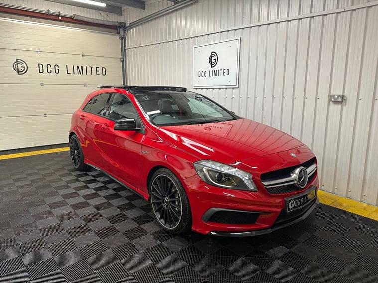 Mercedes-Benz A-Class 2.0 A45 AMG Hatchback 5dr Petrol SpdS DCT 4MATIC Euro 6 (s/s) (360 PS) (2015) £14, 998|81, 350 miles|Automatic (SpdS DCT)|Petrol|Hatchback|Euro 6 Available Now at DCG Limited AA Approved Dealer in Reading This high-performance Mercedes-Benz A45 AMG delivers thrilling power, premium refinement, and everyday practicality in a compact 5-door format. Finished in Red, with 10 recorded services, 2 keys, and 2 owners from new, its been exceptionally maintained and is ready to impress. Backed by AA Dealer Approval, HPI Clear status, a 6-month warranty, and 12 months AA Breakdown Cover, its a standout choice for enthusiasts and professionals alike. Vehicle Highlights: 2.0L Turbocharged Petrol Engine (360 PS) Explosive performance with AMG tuning SpdS DCT Automatic Transmission Lightning-fast gear changes 4MATIC All-Wheel Drive Confident handling in all conditions Euro 6 Emissions Standard ULEZ compliant Finished in Red Bold and sporty Panoramic Glass Roof Bright, premium cabin feel AMG Styling Sports seats, body kit, twin exhausts, and 18 alloy wheels Heated Front Seats & Dual-Zone Climate Control Rear Parking Sensors COMAND Infotainment Sat nav, Bluetooth, USB, DAB radio ISOFIX Mounts Child-seat ready Split-Folding Rear Seats Flexible boot space Supplied with 2 Keys Why Buy from DCG Limited? AA Approved Dealer Trusted and verified HPI Clear No finance or damage history 6-Month Warranty Included Drive with peace of mind 12 Months AA Breakdown Cover Nationwide support 10 Service Records Fully documented history 2 Owners from New Professionally Valeted & Fully Inspected Part Exchange Welcome Flexible Finance Options Available Book An Appointment: DCG Limited, Unit 5b Springalls Farm House Yard, Trowes Lane, Swallowfield, Reading, Berkshire, RG7-1RN Call Today: 01913252156 Email Today: admin dealer's website Browse More Stock: dealer's website