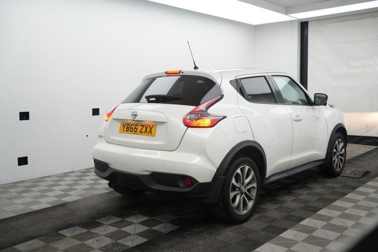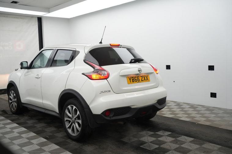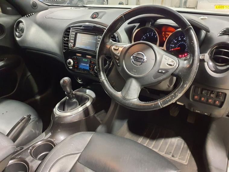 Presenting this 2016 (66) Nissan Juke 1.2 DIG-T Tekna SUV in stylish Pearl White, available now at Select Carz. With just 74, 558 miles and three owners from new, this sporty compact SUV combines eye-catching looks with modern technology and reliable Nissan engineering. Powered by a lively 1.2-litre DIG-T petrol engine delivering 115 PS, it offers a fun, efficient drive with smooth performance and excellent fuel economy. The Tekna trim is the top of the range, packed with premium features including full leather seats, heated front seats, satellite navigation, reverse camera, Bluetooth connectivity, keyless entry and start, and a premium Bose sound system. The manual transmission ensures a responsive and engaging driving experience, while safety tech like lane departure warning and blind spot monitoring provide extra confidence on every journey. Finished in elegant white with 17-inch diamond-cut alloy wheels and Nissans bold crossover styling, this Juke looks as good as it drives. Inside, youll find a smart, modern cabin with plenty of comfort and technology. At Select Carz, all our vehicles are fully inspected, serviced, and valeted for your peace of mind. Visit us today or book your test drive to experience this well-equipped, reliable Nissan Juke Tekna for yourself!