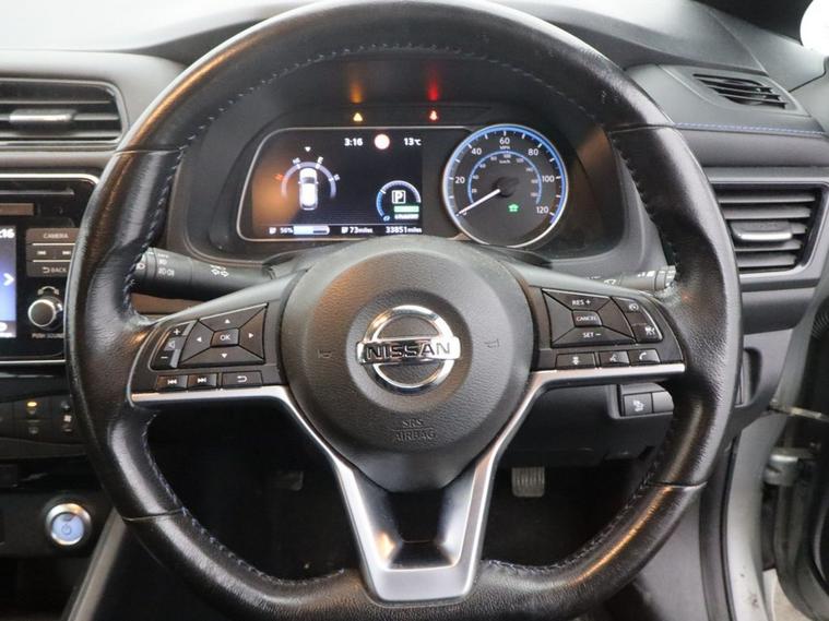 This 2019 Nissan Leaf Acenta boasts exceptionally low mileage for its age, having covered just 33, 850 miles, and benefits from a long MOT. As an electric vehicle with a 40 kWh battery, it offers a maximum range of 168 miles when new, making it a practical choice for daily commutes and longer journeys. Charging is convenient, with a full charge at home using a 7kW charger taking approximately 7 hours and 30 minutes, while rapid public charging can take you from empty to 80% in just 1 hour and 20 minutes. The Acenta trim level comes equipped with a host of desirable features designed to enhance your driving experience. Youll appreciate the ease of Nissan i-Key with keyless entry, alongside automatic air conditioning with climate control to keep you comfortable in all conditions. Seamlessly connect your smartphone with Android Auto and Apple CarPlay integration. Intelligent automatic headlights with a follow me home function and auto hazard lights ensure visibility and safety, while Blind Spot Warning provides an extra layer of awareness on the road. Furthermore, the Leaf offers a generous boot space, providing ample room for your shopping or luggage.