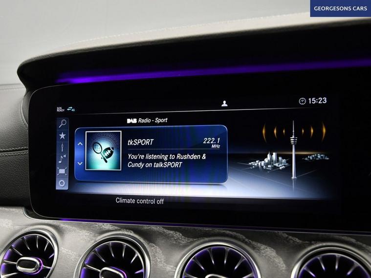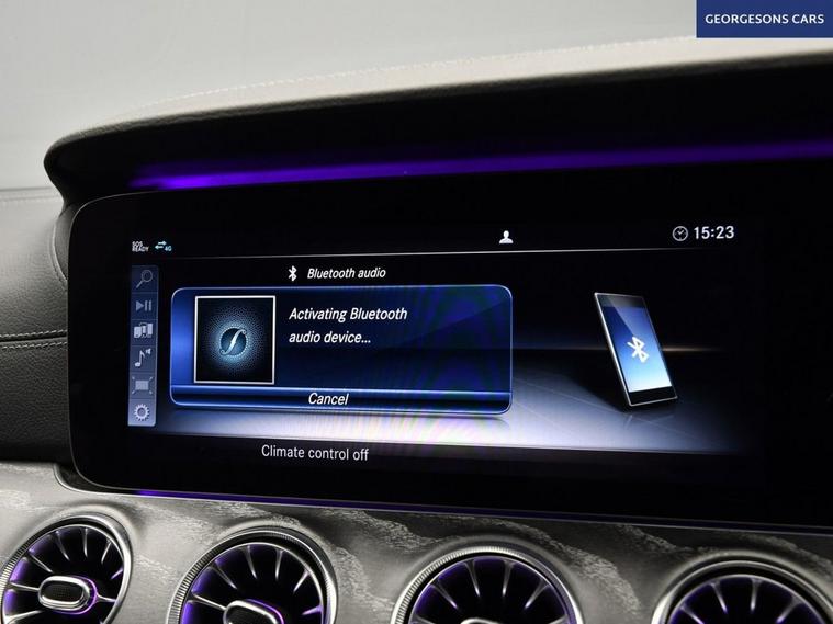 The Mercedes-Benz CLS-Class 2.9 CLS350d AMG Line (Premium Plus) combines a responsive 2.9-litre twin-turbo diesel V6 with 367hp, delivering 0-62mph in 4.9 seconds and up to 44.1mpg in this all-wheel-drive 4MATIC setup with a smooth 9-speed G-Tronic automatic transmission. The top-spec Premium Plus trim elevates luxury with electric sliding sunroof, Burmester premium sound system, and a dynamic chassis for refined grand tourer performance. With five services, including four at Mercedes dealers, this CLS is in exceptional condition. Immerse yourself in Burmester surround sound, while the electric sunroof floods the cabin with light. Navigate effortlessly with integrated satellite navigation, Apple CarPlay, Bluetooth, and DAB radio. Parking is effortless with 360-degree camera and parking sensors. Paddle shift gears provide precise control, cruise control with speed limiter and lane assist enhance highway ease, and blind spot assist adds security. Electric heated memory seats ensure adjustable luxury with selectable drive modes for tailored performance. The sleek four-door coupe design includes a 520-litre boot for practicality