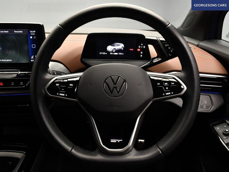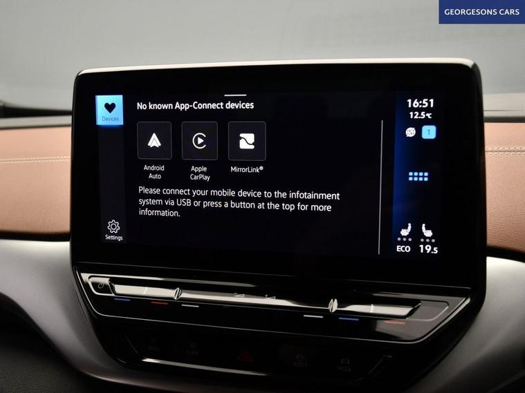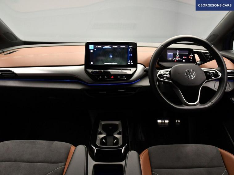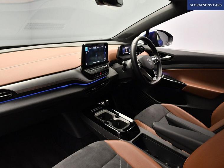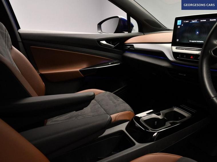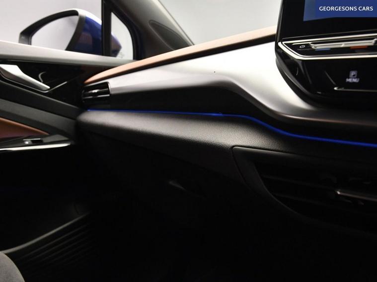 The Volkswagen ID.4 Pure 52kWh Life combines an efficient electric motor with 168hp, delivering 0-62mph in 9.0 seconds and up to 223 miles of WLTP range in this rear-wheel-drive setup with a smooth single-speed automatic transmission. The Life trim offers stylish practicality with 18-inch alloy wheels and a spacious interior for versatile family EV motoring. With one owner and two services, this ID.4 is in excellent condition. Ambient lighting creates a welcoming interior atmosphere, while integrated satellite navigation, Apple CarPlay, Bluetooth, and DAB radio ensure seamless connectivity. Parking is a breeze thanks to the reverse camera and parking sensors. Stay comfortable with dual-zone climate control, heated seats, heated windscreen, and heated steering wheel. Adaptive cruise control with speed limiter enhances safety and relaxation on highways. The spacious five-door SUV design includes a 543-litre boot for practicality.