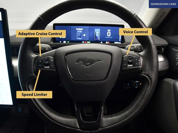 The Ford Mustang Mach-E Standard Range combines a powerful rear-mounted electric motor with 269hp, delivering 0-62mph in 6.9 seconds and up to 273 miles WLTP range in this rear-wheel-drive setup with a smooth single-speed automatic transmission. The premium trim brings bold Mustang styling, 18-inch alloys and a high-tech interior. With one owner, this Mustang is in excellent condition. Navigate effortlessly with integrated satellite navigation, Apple CarPlay, Bluetooth and DAB radio. Parking is a breeze thanks to the reverse camera and parking sensors. Stay comfortable with dual-zone climate control and heated seats. Adaptive cruise control with speed limiter, lane assist and hill assist enhance safety and relaxation on every journey, while push-button start adds daily convenience. The spacious five-door SUV includes a 402-litre rear boot plus 100-litre frunk for practicality.
