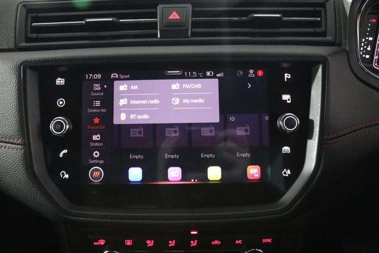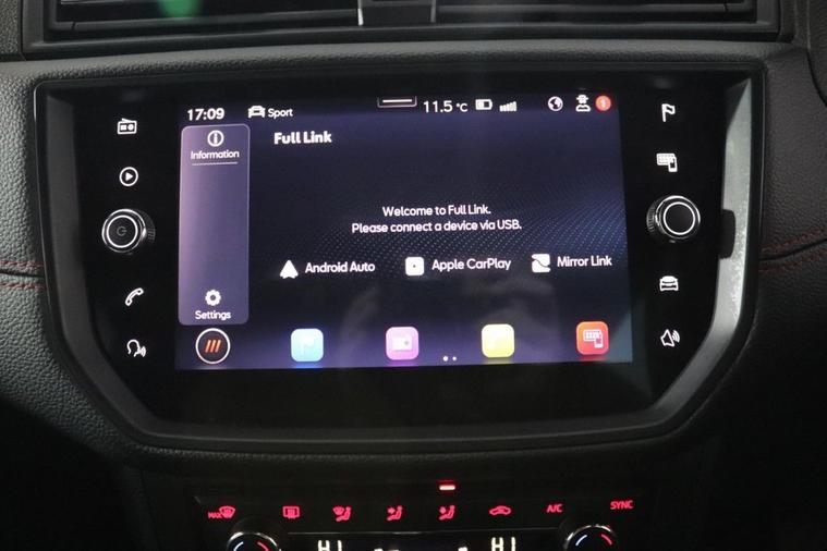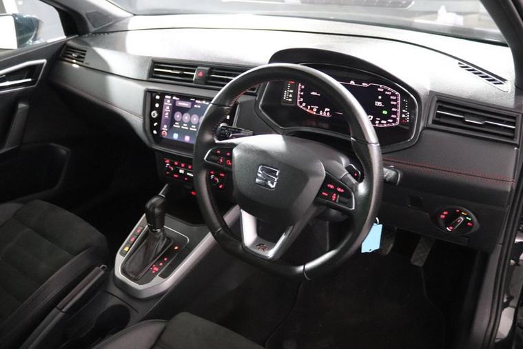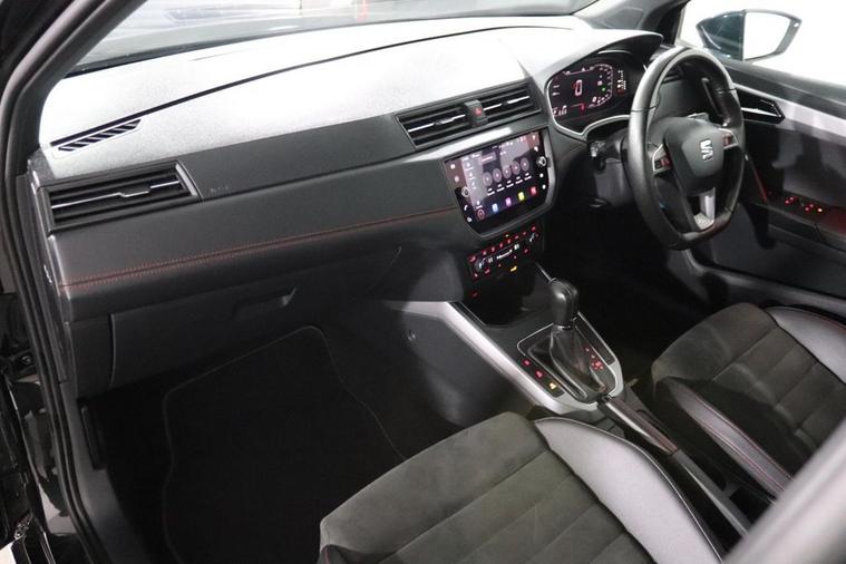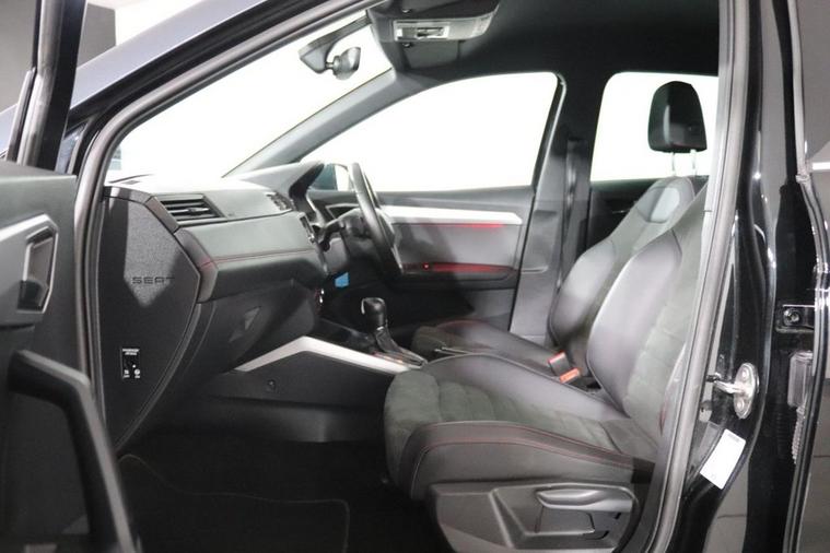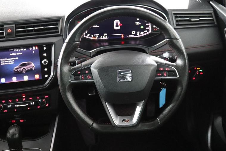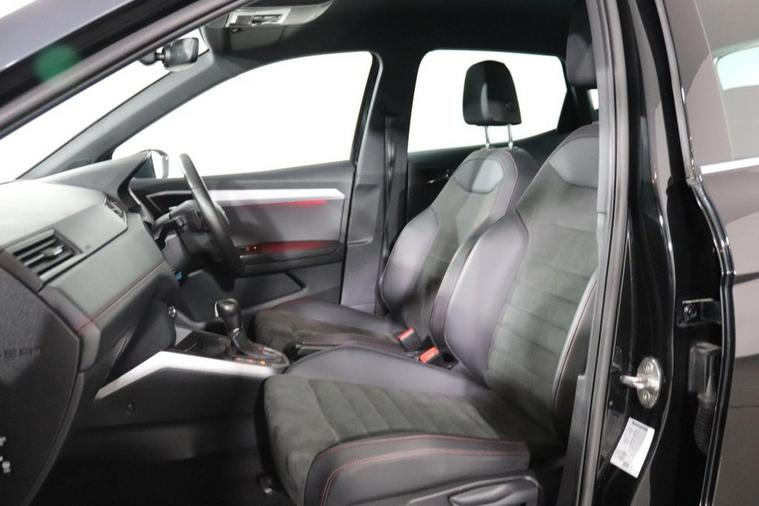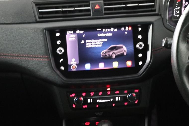 This desirable Automatic Seat Arona FR Sport DSG finished in Midnight Black looks fantastic complemented by 18 inch Performance Alloy Wheels, Full LED Headlights and Rear Privacy Glass. Find your way with integrated SATELLITE NAVIGATION with TOUCHSCREEN Display. Keep connected to your Phones APPS with APPLE CARPLAY, MIRRORLINK and ANDROID AUTO. Sit in luxury with 1/2 LEATHER Upholstery with HEATED FRONT SEATS. Park in ease with REAR PARKING SENSORS. Listen to your music through DAB Digital Radio. Keep connected with BLUETOOTH phone system with Audio Streaming. Comfortable to drive with Dual-Zone CLIMATE CONTROLLED AIR CONDITIONING and CRUISE CONTROL with Speed Limiting Function. Well equipped with Power-Fold Door Mirrors, Auto Headlights and Rain-Activated Wipers. Also fitted with ISOFIX seats, Multifunctional Steering Wheel, Immobiliser, Alarm and Remote Door Locking. Buy in confidence with JUST 2 OWNERS from new and SERVICE HISTORY with 4 x Documented Services.