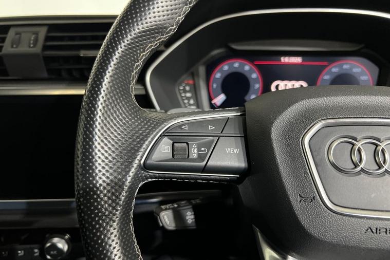 With MOT validity stretching to May 2026, this 2023 Audi Q3 1.5L Petrol, in the sleek Black Edition trim, offers peace of mind for miles to come. As a TFSI Black Edition model, this vehicle combines style and practicality. Stay connected on the move with the Audi Smartphone Interface, featuring wireless Apple CarPlay and Android Auto, and enjoy the convenience of Bluetooth connectivity. The Dual-Zone Electronic Climate Control ensures a comfortable environment for both driver and passengers, while the Light and Rain Sensor, including automatic headlights, adds an extra layer of convenience. The vehicle also features LED Headlights with LED Daytime Running Lights and dynamic rear indicators. The Audi Q3 stands out with its spacious boot, offering ample room for luggage, shopping, or anything else you need to transport. Furthermore, acceleration from 0-60mph in 9.1 seconds means that this vehicle delivers responsive performance for city driving and beyond.