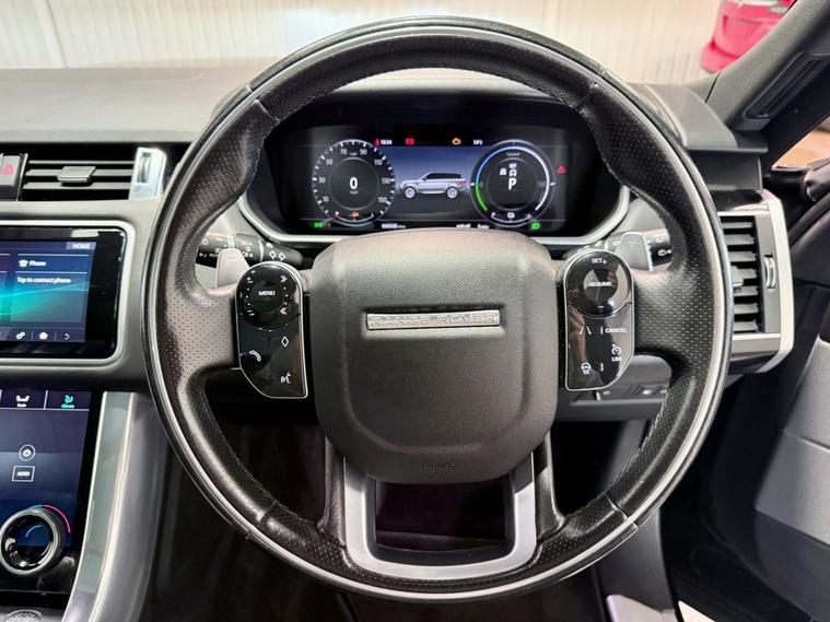 **THIS VEHICLE MAY BE AT OUR 150-CAR STORAGE FACILITY. PLEASE CALL AHEAD TO ARRANGE VIEWING AT OUR WINCHESTER SALES SITE** MOT March 2026. Most recently serviced at 52k miles and will be serviced again by us upon sale. This stunning Range Rover Sport finished in Santorini black with an ebony leather interior and 21 inch gloss black wheels shows off land rovers signature blend between comfort, practicality and power. Designed for anything from long trips down the motorway to off-roading experiences this Range Rover Sport comes equipped with various features to make any journey an enjoyable experience such as heated front and rear seats, panoramic sunroof, front centre console refrigerator unit, Meridian premium signature sound system, cruise control with speed limiter, lane departure warning, rear view camera, dual zone climate control and more. Powered by a 2 litre petrol engine and complimented by a 13.1kWh battery and an automatic gearbox making this a smooth, enjoyable car to drive.