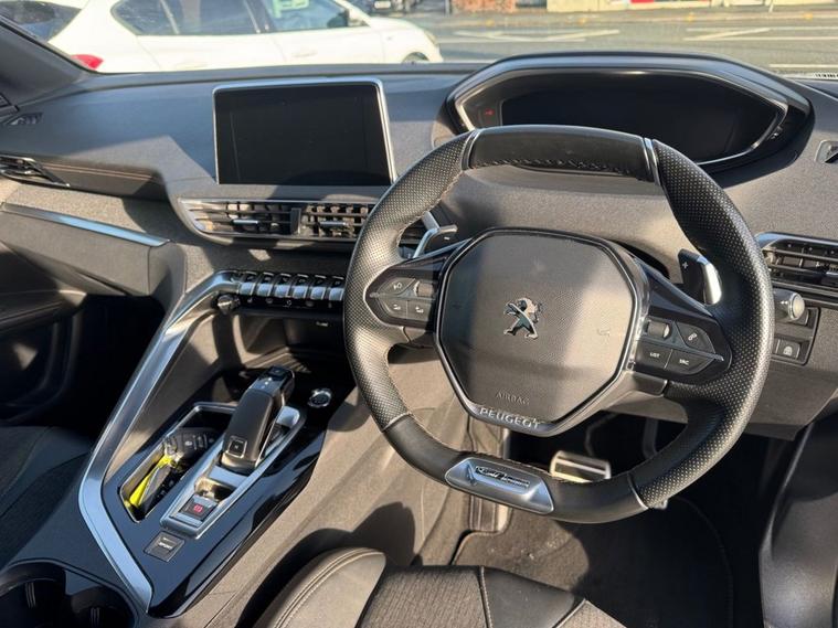 Stunning Peugeot 5008 1.5 BlueHDI GT LINE Premium AUTO 7 SEATER finished white paintwork complimented by 19 inch two-tone alloys. The car boasts an impressive combined fuel efficiency of 60 miles per gallon. Spec includes a touchscreen satellite navigation system, Carplay / Android Auto, Bluetooth connectivity, USB & AUX input, Wireless phone charging, DAB digital radio, heated front seats, seatback tables, rear window blinds, electric opening panoramic glass sunroof, 360-degree reverse camera and front + rear parking sensors. Additional highlights are the cruise control, speed limiter, power folding wing mirrors, dual-zone climate control air conditioning, and ISOFIX for child seat safety. Call 01138032273 or visit dealer's website