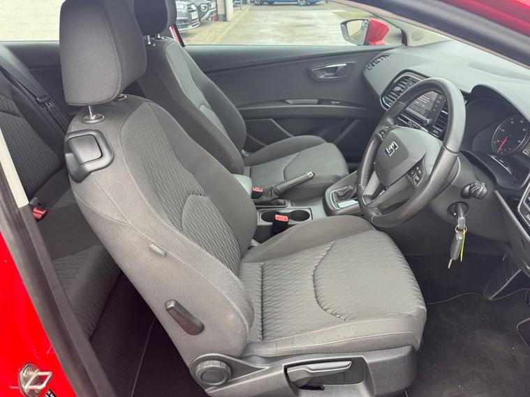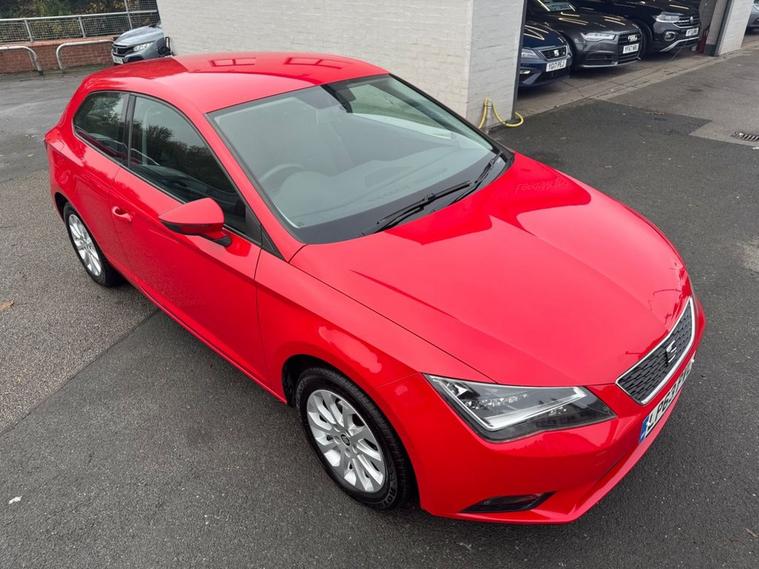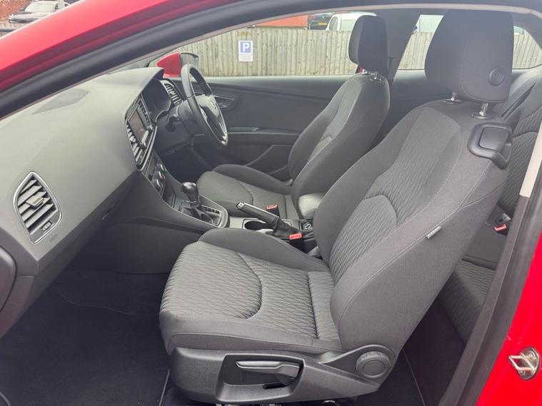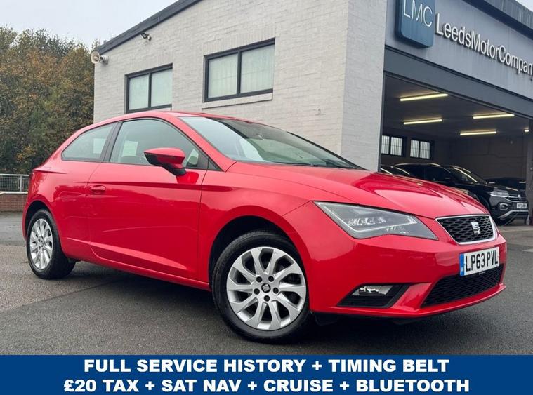 1 OWNER FROM NEW Seat Leon 1.6 TDi SE SPORT COUPE AUTO in Monstant Red with 16 silver alloys. FULL SERVICE HISTORY with this vehicle, 6 service stamps on record and timing belt changed at 57, 315 miles. Only £20 year road tax and over 70 miles per gallon fuel efficiency. Excellent spec includes upgraded sat nav system (£745). Standard spec includes multi-function steering with cruise control, alloys, air con, trip computer, Bluetooth, auto headlights, DAB radio, Electric windows/mirrors and much more. Call 01138032273 or visit dealer's website