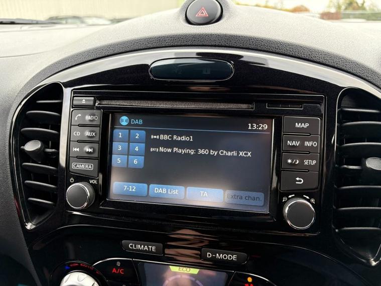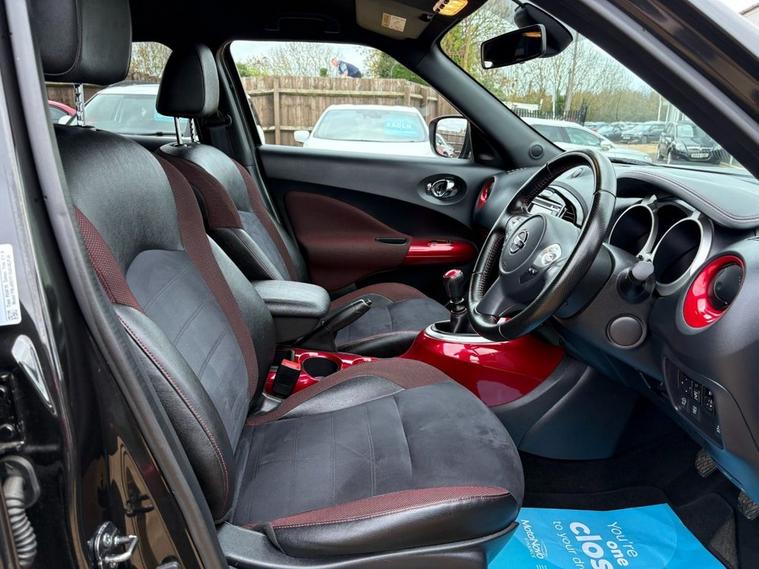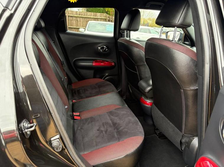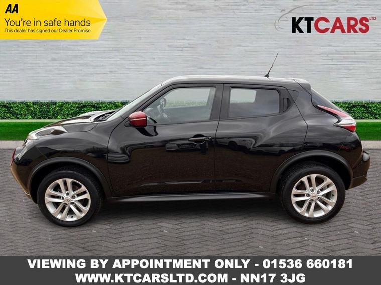 Mot 30th October 2026, + Service History, 5 Services, + 1 Previous Owner, last keeper 2019, + 3 Months Warranty, + ULEZ compliant, + Bluetooth, + DAB CD radio, + Sat nav, + Rear sensors, + Cruise with limiter, + Climate control, + Auto lights/wipers, + USB/aux, + Folding mirrors, + x4 electric windows, + Isofix, + Alloys................ Here we have this lovely Nissan Juke that we have just purchased directly from its previous owner as she was upgrading to a newer car. This Juke is the 1.2 113 BHP petrol engine thats paired with a manual gearbox. The car drives superbly with no issues - the engine sounds healthy, the gear changes are smooth and the suspension is comfortable too! The Nissan is finished in black paint and is fitted with a part leather/cloth two tone (black & red) interior which looks very smart! The condition inside/out is great and the spec is high too with the main features listed above. Service history is supplied with proof of five services which were done at intervals of 10k, 20k, 27k, 36k and 41k miles. We have serviced and health checked the car so its ready for its new owner! This Nissan has been well looked after but please view the pictures to see the general condition and specification of the car, we have taken pictures of every angle and of the full interior, we believe that a picture can tell a thousand words. All the tyres have good depths and are on 6mm, 6mm, 4mm and 4mm. This car will be economical to run, with £165 annual road tax, great Mpg and only group 11 insurance. For your added peace of mind all our vehicles are HPi clear, professionally valeted and warranted to provide you with the confidence to purchase your new vehicle. Finance is available on this car with great rates starting from 12.9% APR, please visit our website to make a no obligation application through Motonovo finance, this should take you no longer than 5 minutes. We have all the documentation, and the car is ready to drive away today with a standard 3 months warranty, extended warranties are available, please ring or email to book an appointment for a viewing and test drive. Features may be incorrect as these are automatically generated by Autotrader. Please examine photos for your own satisfaction. **PLEASE NOTE WE DO NOT ACCEPT CASH PAYMENT TO BE MADE BY BANK TRANSFER.