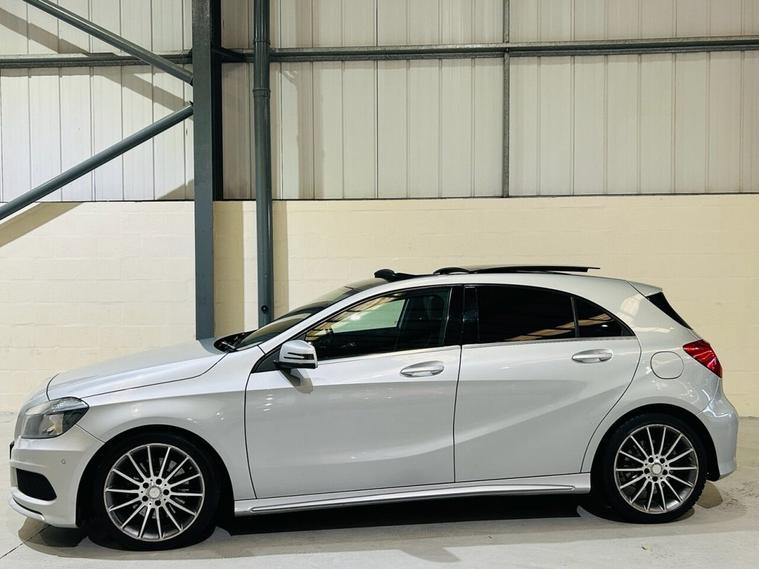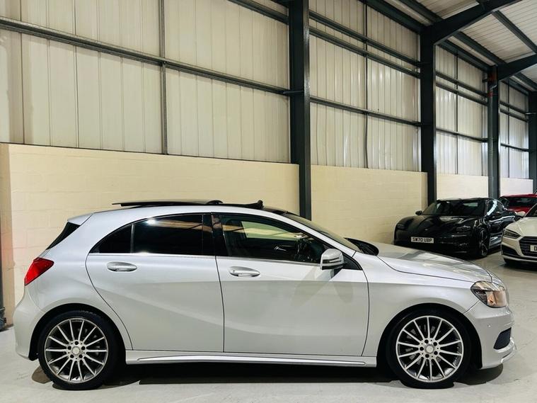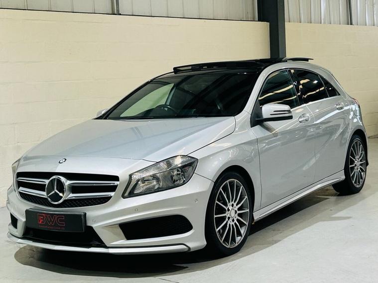 Mercedes-Benz A-Class 2.1 A220 CDI AMG Sport Hatchback 5dr Diesel 7G-DCT Euro 6 (s/s) (170 ps) Registration: FV64WXR | 84, 000 miles | Finished in Iridium Silver Metallic with Black Artico Leather and Alcantara AMG Sport Interior A superb example of the Mercedes-Benz A220 CDI AMG Sport, finished in Iridium Silver Metallic with a premium Black Artico leather and Alcantara interior. Combining sporty AMG styling with diesel efficiency, this A-Class offers sharp looks, excellent performance and impressive refinement Powered by the 2.1-litre CDI diesel engine producing 170 PS, paired with the smooth 7G-DCT automatic gearbox, it delivers strong acceleration and exceptional fuel economy. Fully Euro 6 compliant and ULEZ friendly, this is an ideal premium hatchback for both city driving and longer journeys. Key Features 2.1-litre CDI diesel engine (170 PS) 7G-DCT automatic transmission with paddle shift Euro 6 ULEZ compliant AMG Sport styling with body kit and sport suspension 18 AMG twin-spoke alloy wheels Panoramic Glass Roof Heated front seats LED daytime running lights Front and rear parking sensors Dual-zone climate control Cruise control and speed limiter Multifunction flat-bottomed AMG steering wheel Artico leather and Alcantara sport seats Bluetooth connectivity and media interface Additional Information 84, 000 miles covered Full service history Combined economy around 60 mpg (depending on driving conditions) 0 to 62 mph in approximately 7.3 seconds Road tax: £20 per year Finished in Iridium Silver Metallic with Panoramic Roof & Heated Seats A stylish, efficient and well-equipped AMG Sport hatchback in excellent condition