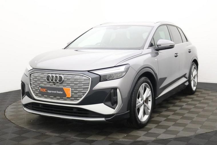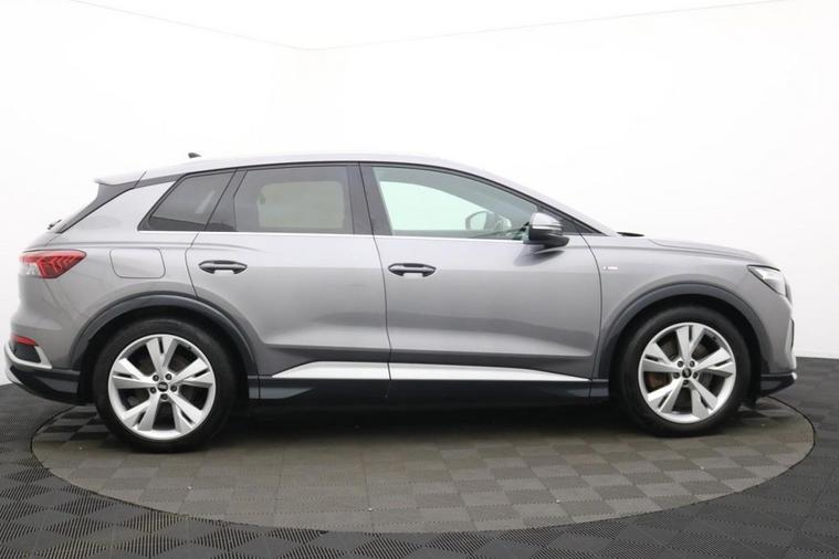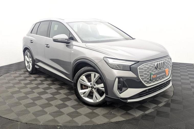 The Audi Q4 e-tron 40 S line is a striking all-electric SUV that perfectly combines cutting-edge technology, refined luxury, and dynamic performance. Powered by a single electric motor producing 204 PS, the Q4 e-tron 40 delivers smooth, instant acceleration and an impressive range of up to 320 miles (WLTP), making it ideal for both urban driving and long-distance journeys. The S line trim enhances its athletic appeal with sporty exterior styling, 19 alloy wheels, S line bumpers, and Matrix LED headlights, giving the Q4 e-tron a confident, futuristic presence on the road. Inside, Audis meticulous attention to detail shines through with high-quality materials, sports seats, ambient interior lighting, and a multifunction sports steering wheel. At the heart of the cabin is the Audi Virtual Cockpit and a 10.1 MMI touch display, offering seamless access to navigation, media, and connected services. The spacious interior and 535-litre boot capacity ensure practicality and comfort for family life or business use alike. With its refined handling, whisper-quiet drive, and zero-emission performance, the Audi Q4 e-tron 40 S line SUV embodies the future of premium electric mobility stylish, sustainable, and unmistakably Audi.