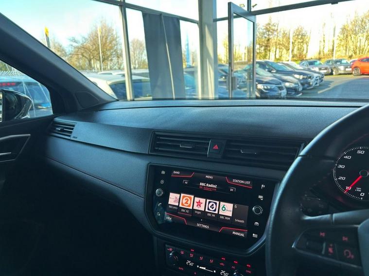 This 2020 SEAT Arona TSI FR boasts exceptionally low mileage for its age, having covered just 15, 327 miles, and comes with a clear vehicle history check. This stylish FR trim model is equipped with a 1.0 litre Euro 6 compliant petrol engine, offering an impressive fuel economy of 49 miles per gallon. Youll appreciate the convenience of rear parking sensors with parking assistance, making manoeuvring effortless. Stay connected and entertained with the Connectivity Pack Plus, featuring wireless phone charging and Full Link smartphone integration that supports both Android Auto and Apple CarPlay. Enjoy seamless Bluetooth audio streaming and handsfree calls with the integrated Bluetooth system. For your comfort, the Arona features dual zone climate control, allowing you to set individual temperatures. Its low CO2 emissions also contribute to a more environmentally conscious drive, setting it apart from many other vehicles in its class.