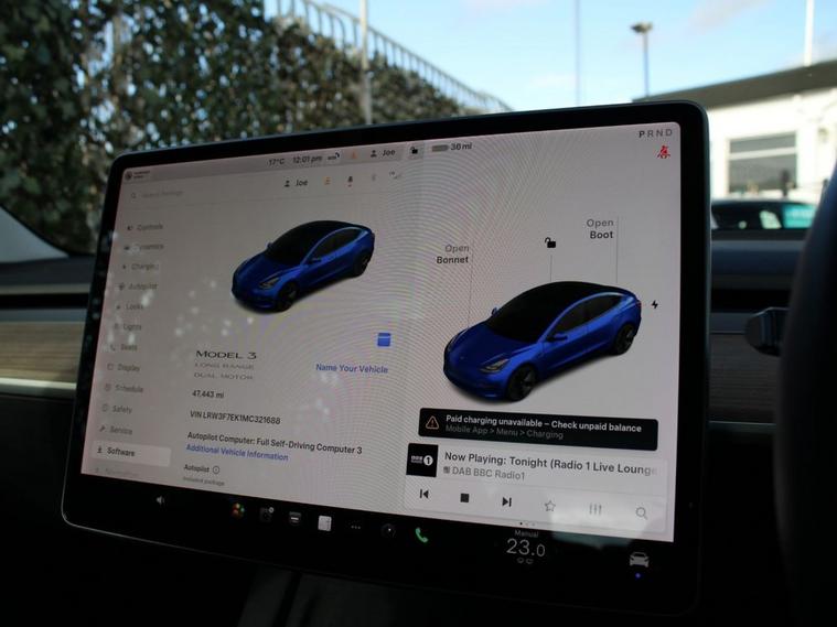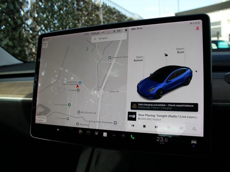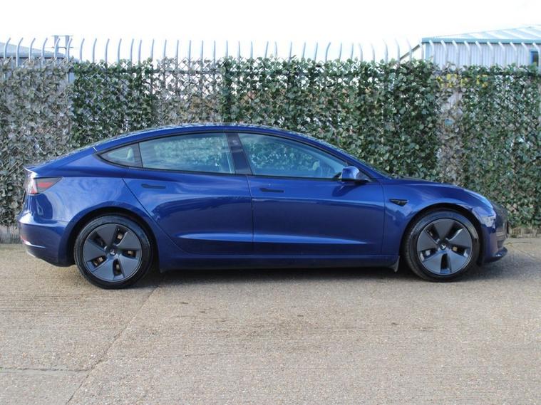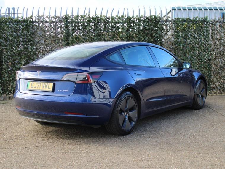**92.5% BATTERY HEALTH** This 2021 Tesla Model 3 Long Range presents a superb ownership opportunity, having had only one owner since new. As an electric vehicle with Four Wheel Drive, it boasts a substantial 78 kWh battery, offering an impressive maximum range of 360 miles when new. This model features a fixed panoramic glass roof, providing an open and airy cabin experience. Convenience is enhanced with Keyless Go, allowing for effortless entry and starting, further supported by remote control access via the Tesla app. For added comfort, it includes a heated steering wheel, and parking is made simpler with front parking sensors. The Long Range variant of the Model 3 is designed for both efficiency and convenience. Recharging at home using a 7kW charger takes approximately 12 hours for a full charge, ensuring you can start each day with a full battery. For longer journeys, the fastest public charging can replenish the battery from empty to 80% in just 26 minutes, a significant advantage for electric vehicle travel. These charging capabilities, combined with the extensive range and advanced features, highlight how this Tesla Model 3 offers a superior driving and ownership experience compared to many other vehicles in its class.