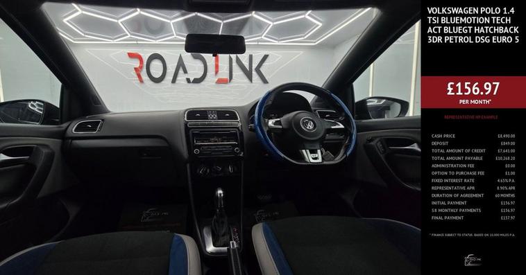 This Volkswagen Polo 1.4 TSI BlueGT DSG blends sporty performance with everyday comfort and efficiency. Featuring 17 Montani alloys, BlueGT body styling, and sports suspension lowered by 15mm, it delivers sharp handling and a dynamic look. Inside, enjoy sports seats, a leather multifunction steering wheel with paddle shift, and Bluetooth connectivity with DAB radio. Its practical too, with rear parking sensors, cruise control, air conditioning, and ISOFIX child seat points. Powered by VWs advanced 1.4 TSI ACT engine (140PS), it offers the perfect mix of power and economy switching seamlessly between four and two cylinders for efficiency without compromise.