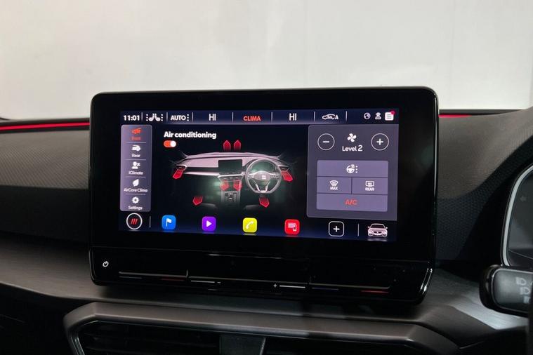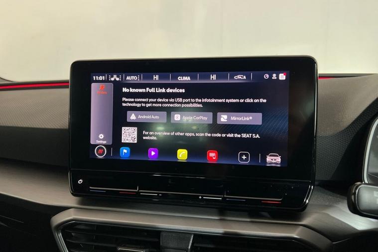 This 2022 SEAT Leon TSI EVO FR Sport is a truly exceptional example, boasting incredibly low mileage of just 11944 miles from its single owner. Finished in the sporty FR Sport trim, this Euro 6 compliant 1.5 litre petrol model offers a compelling blend of style and practicality. Youll appreciate the convenience of Park Assist with front and rear parking sensors, making manoeuvring effortless. Stay comfortable in all conditions with three zone climate control, and enjoy enhanced visibility thanks to automatic headlights with a coming home feature. Connectivity is seamless with Full Link smartphone integration, supporting both wireless Apple CarPlay and wired Android Auto, while heated front seats ensure a pleasant driving experience. The generous boot space provides ample room for all your needs. Experience spirited performance with the Leons impressive 0-60mph acceleration in just 8.7 seconds, a testament to its dynamic engineering. These highlights, combined with its low mileage and single owner provenance, clearly set this SEAT Leon apart from other vehicles of its kind. It represents a fantastic opportunity to own a well maintained and feature rich hatchback.