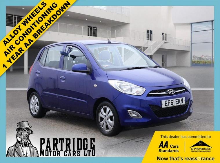 HPI CLEAR, SUPPLIED WITH NEW MOT, SUPPLIED WITH NEW SERVICE, LOW MILEAGE, 3 OWNERS FROM NEW, AIR CONDITIONING, ALLOY WHEELS, 5 DOORS, MANUAL, 3 MONTHS WARRANTY, 1 YEAR AA BREAKDOWN, AA DEALER **2011 Hyundai i10 1.2 Active: Low Mileage, £20 Tax, New MOT & Service! AA Approved!** ******** A fantastic example of the brilliant Hyundai i10 city car, perfect for a first-time driver or as a fantastically economical runaround. This is a superb example with a **very low mileage** for its age. Finished in a lovely Alpine Blue, this practical 5-door i10 is powered by the desirable 1.2L engine (the more powerful and zippy option) and costs only **£20 a year in road tax**. ******** This vehicle will be fully prepared by our workshop to the highest standard for its next owner. It will be supplied with a **brand new service** and a **fresh 12-month MOT**, ensuring complete peace of mind and reliable motoring from day one. ******** **Key Features:** *** **1.2L Petrol Engine**: The more powerful and sought-after engine choice, providing a zippy and confident drive while remaining very economical. *** **£20 Annual Road Tax**: Incredibly cheap to tax, saving you money every year. *** **Low Mileage**: A rare find for a car of this age, indicating a cherished and lightly-used example. *** **Air Conditioning**: An essential feature for keeping the cabin cool and comfortable in the summer. *** **Alloy Wheels**: Stylish Active specific alloy wheels that enhance the cars smart appearance. *** **Practical 5-Door Bodystyle**: Offers easy access for all passengers and surprising interior space. ******** **Buy with Confidence:** *** **HPI Clear**: Verified history check for your peace of mind. *** **Supplied with a New Service**: Freshly prepared by our expert mechanics. *** **Supplied with a New 12-Month MOT**: A fresh MOT will be completed for the new owner. *** **Only 3 Owners From New**: A well-cared-for example with a good history. *** **3 Months Warranty**: A comprehensive warranty is included for reassurance. *** **1 Year Breakdown Cover**: Nationwide roadside assistance is included with your purchase. *** **AA Approved Dealer**: Purchase from a trusted dealership inspected to exacting AA standards. ******** **Partridge Motor Cars - Your Trusted AA Dealer:** At Partridge Motor Cars, we pride ourselves on our exceptional standards. Every vehicle undergoes a meticulous inspection and preparation process to ensure it meets our high expectations. Were 5-star rated for a reason! ******** **Interested in this Hyundai i10?** *** Schedule a viewing and test drive today! Call Partridge Motor Cars at **01403485928** or visit our website at * dealer's website *** Finance Available: Drive away today with flexible financing options. *** Part Exchange Welcome: Trade in your old car for a great deal on this Hyundai i10. ******** A fantastic, low-mileage city car with rock-bottom running costs. Fully prepared and ready to go!