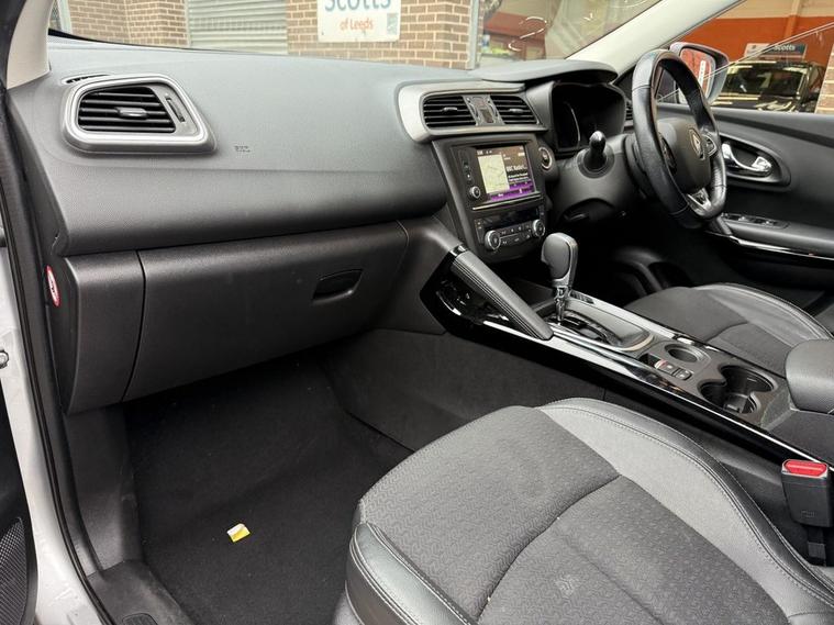 JUST ARRIVED AWAITING VALET, FRESH PHOTOS TO FOLLOW. Scotts of Leeds used Car Sales are pleased to offer this RENAULT KADJAR 1.5 dCi Dynamique S Nav SUV 5 Door Diesel Automatic in Silver. The car is in good condition throughout, in a lovely colour combination and a great specification including Satellite navigation, Apple car play, Bluetooth, Cruise control, DAB digital radio, Front & rear parking sensors, Dual USB point, Aux point, Part leather seats, Automatic lights & wipers, Lane departure warning, Voice command, Electric windows, Drivers armrest, Privacy glass, Isofix, Alloy wheels and much much more. The car will be supplied with an up to date service record including 6 services and an MOT until October 2026 ready to drive away. 3 MONTH NATIONWIDE WARRANTY provided with all vehicles. NATIONWIDE DELIVERY also available. A guaranteed 12 Months MOT can be added for an extra £100. DISCLAIMER: The above specification is true and correct. Any other specification listed elsewhere can sometimes be incorrect. Please check with Sales Executive to clarify this if needed prior to purchase.