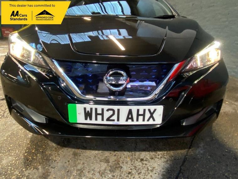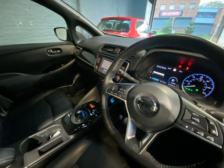 This 2021 Nissan Leaf boasts a full service history, offering peace of mind for its next owner. As an electric vehicle, it features a 40 kWh battery with a maximum range of 168 miles when new. Charging at home with a 7kW charger takes approximately 7 hours and 30 minutes, while rapid public charging can take it from empty to 80% in just 1 hour and 20 minutes. This Leaf also comes equipped with Automatic Air Conditioning including Climate Control, a DAB Radio with Apple CarPlay and Android Auto, Blind Spot Intervention, Intelligent Auto Headlights, and Nissan i-Key with a push button start for keyless entry. The Nissan Leaf 10 variant offers a compelling blend of technology and efficiency. Its electric powertrain provides a smooth and quiet driving experience, making it an excellent choice for both city commuting and longer journeys. The inclusion of Apple CarPlay and Android Auto ensures seamless integration with your smartphone for navigation and entertainment. Advanced safety features like Blind Spot Intervention and Intelligent Auto Headlights enhance driver awareness and confidence, setting this Leaf apart from other vehicles in its class.