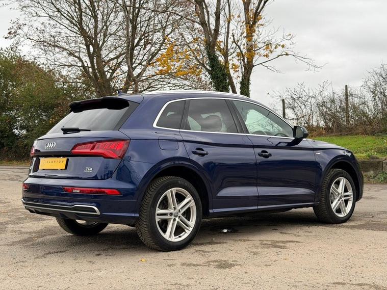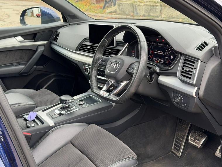 This 2018 Audi Q5 TDI V6 S line boasts a clear vehicle history, offering peace of mind for its next owner. This capable four wheel drive model features a powerful 3.0 litre diesel engine, meeting Euro 6 emissions standards. It comes equipped with the desirable Technology Package, including Bluetooth connectivity and wireless phone charging, alongside the Tour Pack which adds adaptive cruise control for effortless journeys. Further enhancing its appeal are the stylish 19 inch alloy wheels in a diamond cut dynamic design, high beam assist for improved night driving, and Audis Pre Sense Basic safety system. With an MOT valid until May 2026 and a towing weight of 2400 kg, this Q5 is ready for adventure. The performance of this Audi Q5 is truly impressive, accelerating from 0 to 60 mph in just 5.8 seconds, a speed that sets it apart from many similar vehicles. Its fuel economy is also a significant advantage, achieving an excellent 49 mpg, making it an economical choice for daily driving. The generous boot space provides ample room for luggage or shopping, further demonstrating its practicality. Additionally, this model benefits from a low insurance group, indicating that running costs are kept to a minimum compared to other vehicles in its class.