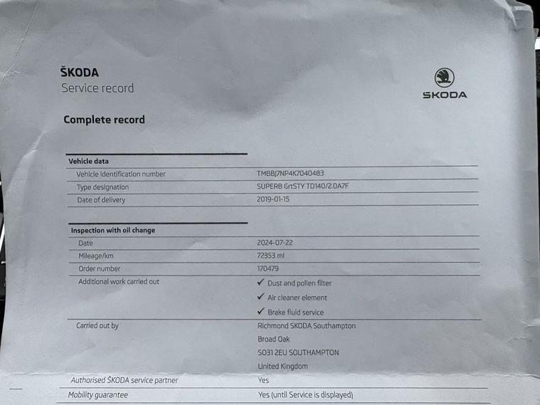 This 2019 Skoda Superb TDI SE L Executive boasts a clear vehicle history, offering you peace of mind. Powered by a robust 2.0 litre Euro 6 diesel engine, this model combines efficiency with performance, achieving 0-60mph in a brisk 8.0 seconds. The SE L Executive trim level ensures a premium experience, featuring front and rear parking sensors with parking assistance for effortless manoeuvring. Stay connected and entertained with SmartLink Plus, compatible with both Android Auto and Apple CarPlay. Experience ultimate comfort with the electrically adjustable drivers seat, complete with memory function and lumbar support. Keyless entry and a start-stop system with SAFE system add to the convenience and security. Inside, youll find dual-zone air conditioning with a humidity sensor and control, ensuring a pleasant cabin environment for all occupants. These features collectively demonstrate how this Skoda Superb offers a superior driving experience compared to other vehicles in its class.