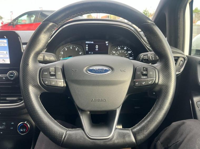 Powered by a trusted 1.0 litre petrol engine and paired with its smooth 6 speed manual gear box it boasts 99 bhp and returns an incredible 50.4 mpg on a combined cycle This Ford has done just under 43, 000 miles, considering the year of manufacture this is a low millage car This Fiesta comes with 5 seats all having ample leg room, in the back there is a very generous load space for all your needs As you would expect it benefits from great spec such as telephone connection, screen display and just so much more