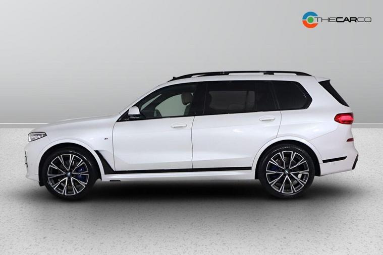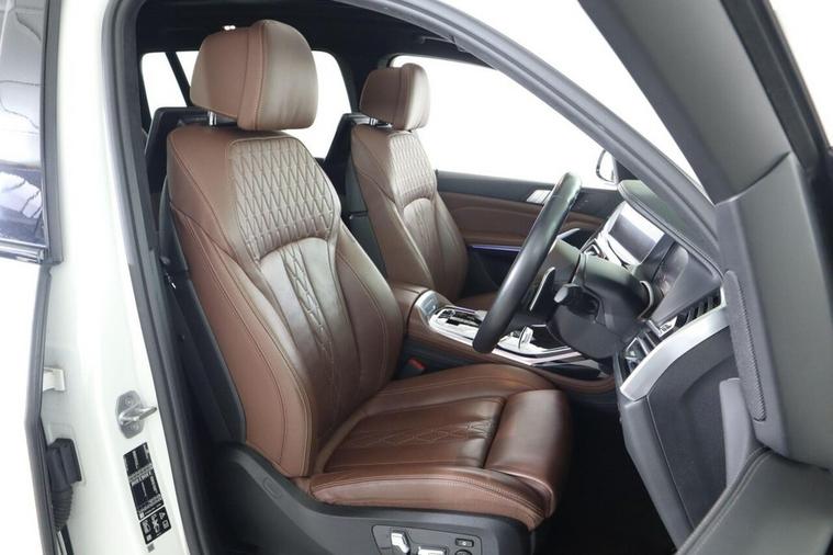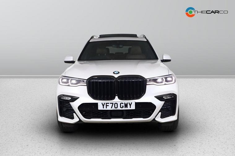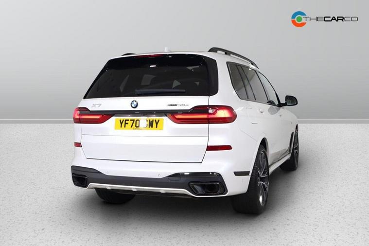 This 2020 BMW X7 30d M Sport presents an exceptional opportunity with its remarkably low mileage of just 31, 141 miles. As a Euro 6 compliant model, this four wheel drive X7 offers a powerful 3.0 litre diesel engine, capable of accelerating from 0 to 62mph in a swift 7.0 seconds. The M Sport trim ensures a dynamic driving experience, complemented by the M Sport Plus Package and striking 22 inch BMW Individual Light Y Spoke Style 758 alloy wheels. Inside, you'll find comfortable seating for seven, along with the advanced Rear Seat Entertainment Professional system and the convenient BMW Display Key. Further enhancing this impressive vehicle are the elegant chrome trims and door surrounds, adding a touch of sophistication. The X7 also boasts a substantial boot space, making it ideal for families and those who require ample storage. With a towing weight of 2200 kg, it is well equipped for various needs. These features collectively demonstrate how this BMW X7 stands out from other vehicles in its class, offering a blend of performance, luxury, and practicality.
