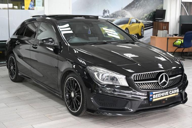 DRIVE AWAY TODAY OR HOME DELIVERY TO YOUR DOORSTEP FINANCE & PART EXCHANGE ARRANGED ONLINE** 7 DAY MONEY BACK GUARANTEE** Lovely car Mercedes Cla220d amg sport shooting brake in metallic black with full service history sat nav cd radio bluetooth media usb half leather seats with armrest electric folding door mirrors front and rear parking aid sensors xenon lights flat bottom steering wheel with f1 style paddleshifts eco comfort sport individual dynamic driving modes electric push button tailgate alloys privacy