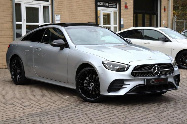 We are delighted to offer this stunning spec, 2022 Mercedes Benz E300dh 2.0 AMG Line Night Edition Premium Plus 4MATIC Coupe which is finished in High Tech Silver. Our example has had one owner from new and has only covered 29, 000 miles. Offering Mercedes 4MATIC four-wheel drive, 281bhp, striking looks and great cargo space, this car is a fantastic all-rounder. Our example boasts an extensive specification which includes: Sliding Panoramic Sunroof, Electric/Memory & Heated Front Seats, Burmester Premium Surround Sound System, Wireless Charging, Keyless Entry and 360 Surround View Cameras. This car has full Mercedes service history and has been serviced at the following mileages: 13, 162 (21/04/2023), 23, 654 (23/05/2024) and 28, 600 (22/07/2025) and as part of this cars preparation before sale we have put a fresh MOT on the car, which has no advisories. **Cash Price £34, 495.00, £3, 345.00 Deposit, 48 Monthly Payments of £499.99, Guaranteed Future Minimum Value of £16, 529.85, Based on 8, 000 Miles Per Annum at 9.9% APR** (a) **FOR AUTOTRADER APP USERS, PLEASE SEE THE BELOW TAB THIS CAR COMES WITH TO SEE THE OTHER SPECS ON THIS CAR OR VISIT OUR WEBSITE FOR MORE INFO**