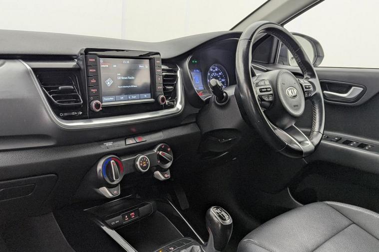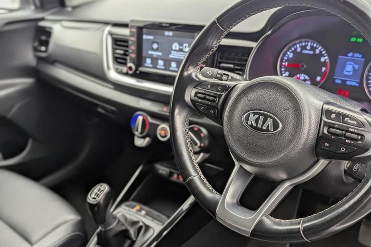 The Kia Stonic 1.0 T-GDi Maxx is a stylish and well-equipped compact SUV that combines sporty design, advanced features, and efficient performance. Powered by a lively 1.0-litre turbocharged petrol engine, it delivers a smooth, responsive drive with excellent fuel economy perfect for both city streets and longer motorway journeys. The Maxx trim stands out with distinctive design touches, including 17-inch alloy wheels, contrasting roof and mirror caps, and Kias bold signature grille. Inside, the cabin is modern and comfortable, featuring leather-trimmed upholstery, a 7-inch touchscreen with satellite navigation, Apple CarPlay and Android Auto, rear parking sensors, and a reversing camera for everyday convenience. Safety and comfort are top priorities, with features such as lane-keeping assist, autonomous emergency braking, cruise control, and automatic headlights as standard. With its elevated driving position, generous equipment, and compact practicality, the Kia Stonic Maxx offers big-car features in a fun, efficient package. Stylish, versatile, and packed with technology, the Kia Stonic 1.0 T-GDi Maxx is the perfect choice for drivers seeking a confident and capable compact SUV.