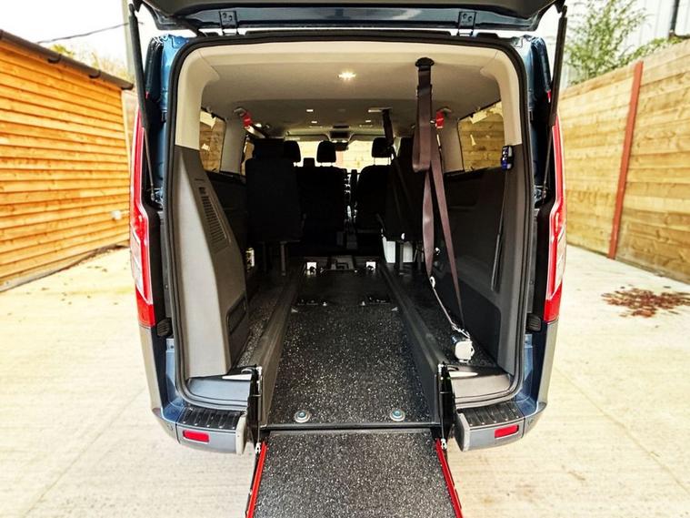 This Allied Mobility converted Ford Transit Custom Wheelchair Accessible Vehicle (WAV) has 5 Seats (3 Front and 2 Rear). Equipment includes Wheelchair Ramp, Electric Winch, Air Conditioning, Electric Front Windows, Electric Adjustable Wing Mirrors, Power Steering, Remote Central Locking, Tinted Rear Windows.