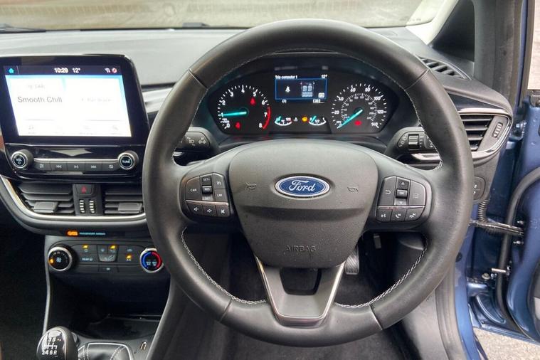 This 2023 Ford Fiesta T Titanium is a superb example, having had only one owner since new. This Euro 6 compliant 1.0L petrol model offers a smooth driving experience and comes with an MOT valid until June 2026, providing peace of mind. Its Titanium trim level is enhanced by the desirable Parking Pack, which includes front and rear parking sensors and a rear camera, making manoeuvring effortless. Youll also appreciate the LED headlights with integrated fog lights and daytime running lights, alongside manual air conditioning for your comfort. The Ford Fiesta T Titanium boasts an impressive 0-60mph acceleration time of just 10.8 seconds, demonstrating its lively performance. Connectivity is seamless thanks to the Ford SYNC2.5 system, compatible with both Android Auto and Apple CarPlay, allowing you to easily access your favourite apps and music. These features, combined with its low owner count and comprehensive MOT, position this Fiesta as an excellent choice for those seeking a well maintained and feature rich compact car.