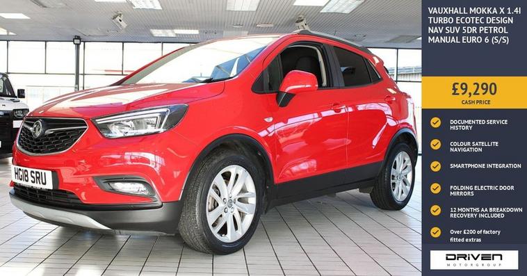 VAUXHALL MOKKA X 1.4I TURBO ECOTEC DESIGN NAV SUV 5DR FINISHED IN LAVA RED AND COMPLIMENTED WITH TWO TONE CHARCOAL INTERIOR, THIS VEHICLE HAS BEEN VERY WELL CARED FOR AND MAINTAINED WITH DOCUMENTED SERVICES CARRIED OUT AT 22801, 25026, 31309 MILES PLUS COMPREHENSIVE PRE DELIVERY HEALTH CHECK COMPLETED PRIOR TO SALE 31773 MILES. KEY FEATURES INCLUDE ALLOY WHEELS, FRONT AND REAR PARKING AID WITH VISUAL AND AUDIO ASSIST, LED DAYTIME RUNNING LIGHTS, ELECTRIC FOLDING DOOR MIRRORS, MULTIFUNCTIONAL STEERING WHEEL WITH VOICE COMMAND, CRUISE CONTROL, MEDIA DISPLAY, COLOUR SATALLITE NAVIGATION, BLUETOOTH, PRIVACY GLASS, SMARTPHONE INTEGRATION PLUS MUCH MORE. COMMITTED TO AA CARS STANDARDS: 3 MONTHS OR 3000 MILES WARRANTY INCLUDED WITH AN OPTION TO UPGRADE: 12 MONTHS AA BREAKDOWN RECOVERY INCLUDED: £75.00 CONTRIBUTION TOWARDS YOUR NEXT SERVICE/MOT AT ANY AA CARS STANDARD APPROVED WORKSHOP: WE STAND BY THE QUALITY OF OUR VEHICLES. WITH THE PURCHASE OF THIS VEHICLE, YOU WILL RECEIVE 3 MONTHS OR 3000 WARRANTY, 12 MONTHS AA BREAKDOWN RECOVERY, GIVING YOU ADDITIONAL PEACE OF MIND AND PROTECTION. ALL OUR CARS COME WITH AT LEAST 6 MONTHS MOT AND PRE SALE HEALTH CHECK AND ROAD TEST. OUR PROFESSIONAL TEAM ENSURES YOUR VEHICLE STAYS IN TOP CONDITION, AND YOU ENJOY A HASSLE-FREE OWNERSHIP EXPERIENCE. 4.6 STARS ON GOOGLE WITH OVER 550 REVIEWS: JOIN OUR COMMUNITY OF SATISFIED CUSTOMERS! OUR DEALERSHIP IS PROUD TO HAVE A 4.6 STAR RATING ON GOOGLE, BACKED BY OVER 550 POSITIVE REVIEWS. WE ARE COMMITTED TO PROVIDING EXCELLENT SERVICE AND HIGH-QUALITY VEHICLES. This Vehicle Comes Equipped with High Specification, Which Includes: -