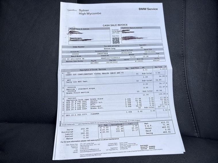 This 2012 BMW X3 20d SE presents a compelling proposition with its remarkably low mileage of just 87, 257 miles, especially for a vehicle of its age, and having had only two owners. This four wheel drive SUV is equipped with a capable 2.0 litre diesel engine, offering a towing weight of 2400 kg, making it a practical choice for various needs. The SE trim level ensures a comfortable and well appointed interior, featuring a Sport Multi Function Leather Steering Wheel for an engaging driving experience. For added convenience, it includes Enhanced Bluetooth Connectivity and a USB Audio Interface, allowing for seamless hands free calls and music streaming. Parking is made simpler with the rear Park Distance Control system, and the Luggage Compartment Separating Net helps keep your belongings organised. A clear vehicle history check provides further peace of mind. The BMW X3 20d SE stands out with its impressive fuel economy, achieving an excellent 50 miles per gallon, which is a significant advantage for running costs compared to many similar vehicles. Its low CO2 emissions also contribute to its appeal. Furthermore, its acceleration from 0 to 60 miles per hour in just 8.5 seconds demonstrates a responsive and capable performance, indicating it offers a more dynamic drive than you might expect from a vehicle focused on efficiency.