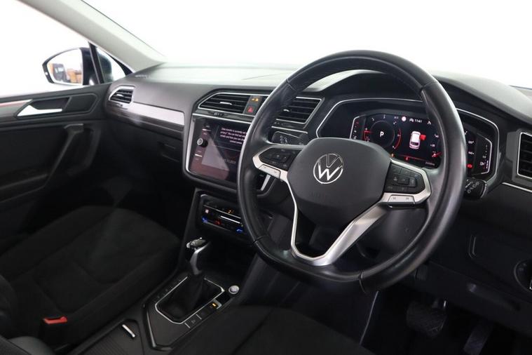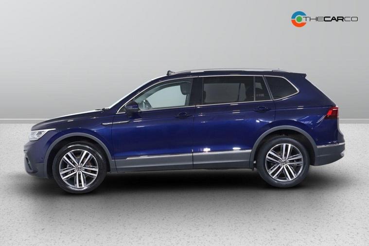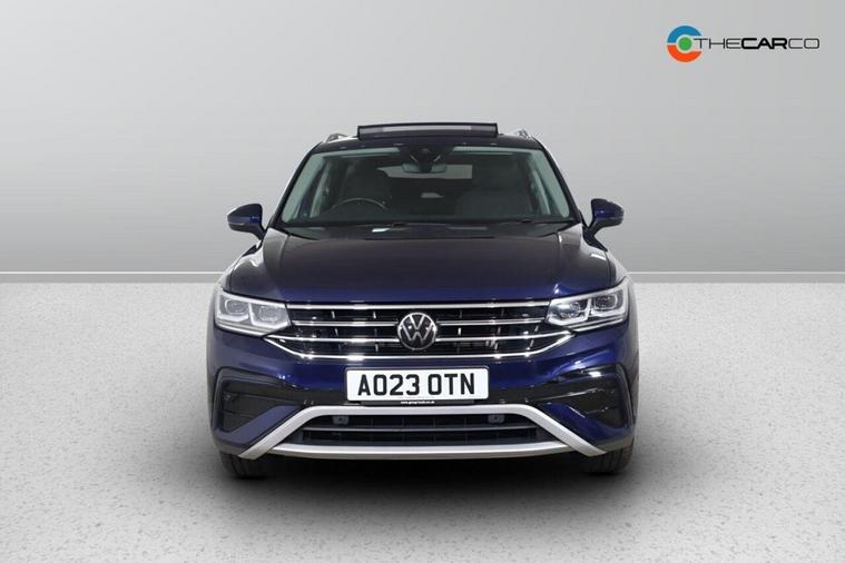 This 2023 Volkswagen Tiguan Allspace TDI Elegance is a superb example, having had only one owner from new. This versatile seven seater SUV is powered by an efficient 2.0 litre diesel engine, meeting Euro 6 emissions standards. It comes equipped with a comprehensive suite of parking assistance features, including a rear view camera, front and rear park distance control, and a multifunction front facing camera. The Driver Assistance Pack adds Blind Spot Assistance for enhanced safety, while the Air Care Climatronic three zone automatic climate control ensures a comfortable cabin environment for all occupants, with independent rear air conditioning and climate controls. The Tiguan Allspace TDI Elegance offers impressive practicality, boasting a large boot space perfect for families and luggage. With a fuel economy of 46 mpg and low CO2 emissions, this vehicle represents excellent value and efficiency compared to similar models. Its combination of advanced technology, spacious interior, and economical performance makes it an outstanding choice for those seeking a capable and refined SUV.
