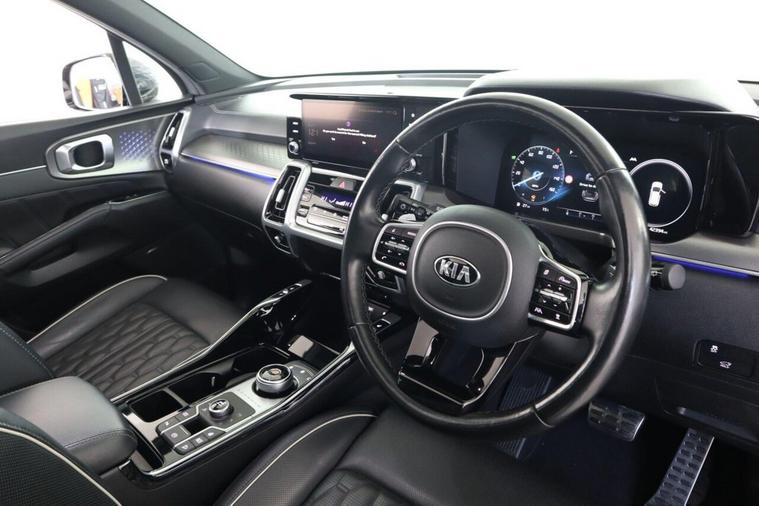 This 2021 Kia Sorento h T GDi 4 is a superb example of a versatile family SUV, boasting a powerful yet efficient 1.6 litre petrol hybrid engine and a smooth automatic transmission. Its Four Wheel Drive system ensures confidence in all conditions, while the spacious interior comfortably seats seven occupants. This Euro 6 compliant vehicle also features Automatic Headlight Control, a 360 Degree Around View Monitor with front parking sensors for effortless manoeuvring, and seamless integration with Android Auto with Voice Control. Experience impressive performance with a 0-60mph acceleration time of just 8.7 seconds, a testament to its dynamic capabilities. The Sorento also offers generous boot space, making it ideal for luggage, shopping, or sports equipment. Adding to the comfort and convenience, the steering wheel is heated, providing a pleasant touch on colder days. These features collectively demonstrate how this Kia Sorento offers a superior driving experience compared to other vehicles in its class.