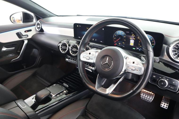 This 2023 Mercedes-Benz CLA250e AMG Line Night Edition is a remarkable example, having had only one owner since new. This stylish saloon boasts a 1.3 litre petrol plug in hybrid engine, adhering to Euro 6 emission standards. It features the desirable AMG Line Night Edition trim, enhancing its sporty appeal. Notable features include Headlamp Assist for automatic light activation, heated front seats for added comfort, and a panoramic roof that can be opened for an airy cabin experience. The Mercedes-Benz sound system delivers 100W through six speakers, and dual Bluetooth interfaces offer convenient connectivity. The premium Plus package further elevates this CLA, offering a refined driving experience. The combination of its plug in hybrid technology, sophisticated AMG Line styling, and the convenience of features like the panoramic roof and advanced sound system sets this vehicle apart. Its single owner provenance suggests careful use and maintenance, making it an attractive proposition for those seeking a well cared for, technologically advanced, and stylish Mercedes-Benz.