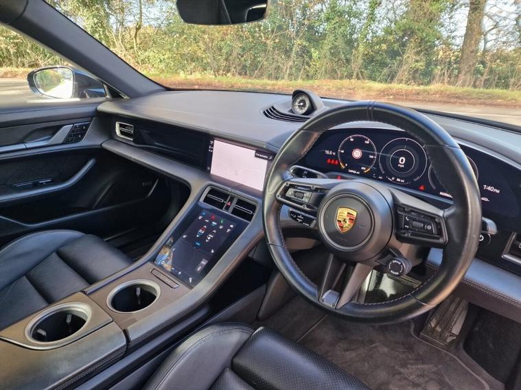 This Porsche Taycan 4S comes with full service history with Porsche. Finished in Black with Full Black Leather interior and 21 inch Mission E alloys in black. Comes with Great Spec Including Porsche Crest on headrests (front), Automatically dimming exterior and interior mirrors, BOSE Surround Sound System, Side window trims in Black (high-gloss), 18-way Adaptive Sports Seats with memory package, PORSCHE Logo on centre console storage compartment lid, Privacy glass, SportDesign Package painted in Black (high-gloss), Ambient lighting, Exterior mirror lower trims painted in exterior colour, including mirror base painted in Black (high-gloss), ParkAssist including reversing camera, Sport Chrono Package incl. mode switch, 4+1 Seats, Electric folding exterior mirrors, Heated GT sports steering wheel in leather, Model designation painted in Black (high-gloss), Windscreen with grey top-tint, 21-Inch Mission E Design Wheels, Panoramic roof, fixed, Porsche Electric Sport Sound, PORSCHE logo LED door courtesy lights, Electric charging cover, 150kW DC on-board booster, Accent Package Darksilver, Mobile Charger Connect, Public charging cable (Mode 3), Porsche Surface Coated Brake (PSCB), brake calipers in Black (high-gloss). This car is in beautiful condition both inside and out and must be seen to be appreciated. Speak to our sales team Directly or WhatsApp Message on 01992692459 for any enquiries or to discuss part exchange valuations. Xclusive Xports are a used car dealership based in Bayford Hertfordshire, SG13 8PZ. Specialising in UK sales as well as export of vehicles, upon request. Established since 2008, with a wide range of used vehicles to suit all budgets and lifestyles, we are sure to have the right car for you. VIEWINGS ONLY BY APPOINTMENT 7 DAYS A WEEK. As an APPROVED AA CAR DEALERSHIP all vehicles are HPI CHECKED & PROVIDED WITH A 12 MONTHS FREE AA BREAKDOWN COVER. Visit our website dealer's website for GREAT FINANCE OPTIONS & TO APPLY ONLINE. Delivery is available throughout the UK, upon request. In addition, we provide a WARRANTY for total peace of mind which can be extended. PART EXCHANGE WELCOME. Please contact us for further information, and check out our 5 STAR REVIEWS. BUY IN CONFIDENCE