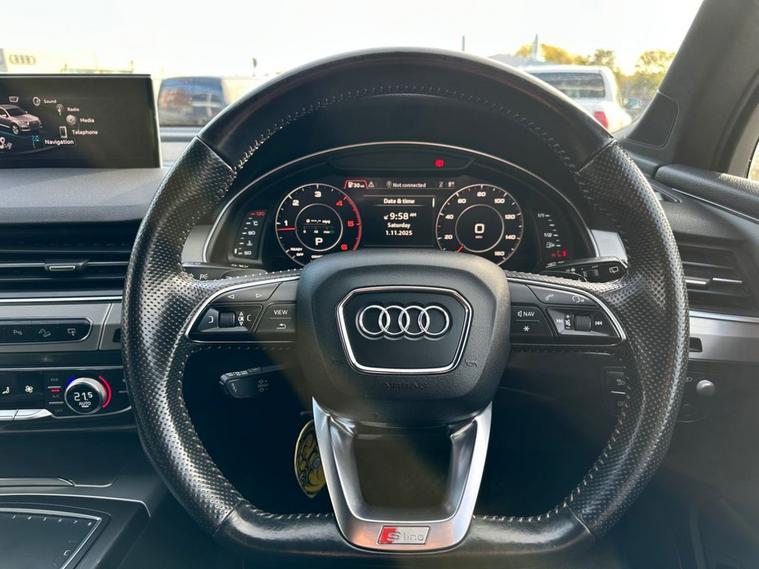 We are proud to present a AUDI Q7 3.0 TDI V6 S line SUV 5dr Diesel Tiptronic quattro Euro 6. A well cared for and maintained vehicle by covering just over 81, 000 miles factory fiited extras include parking sensor, air con, sat nav, heated seats, speed on display, bose audio system, electronic seats, Multi function Steering wheel, and much more. This car looks and drives superb and really needs to be seen to be appreciated. Any inspection and test drive welcome. We offer 6 Months AA Warranty extendable by upto 36 Months & 12 Months Breakdown cover. Full dealer facilities available, low rate finance available, low cost delivery, extended warranties, part exchanges welcome.