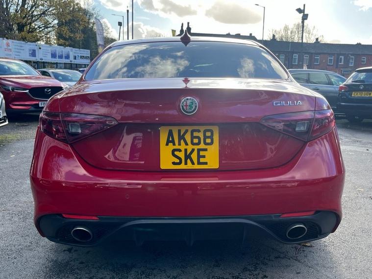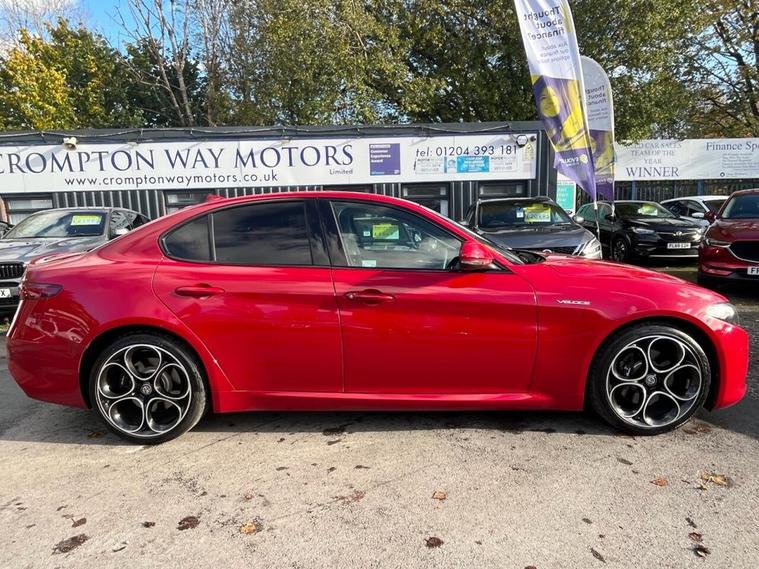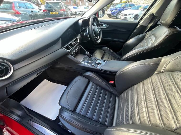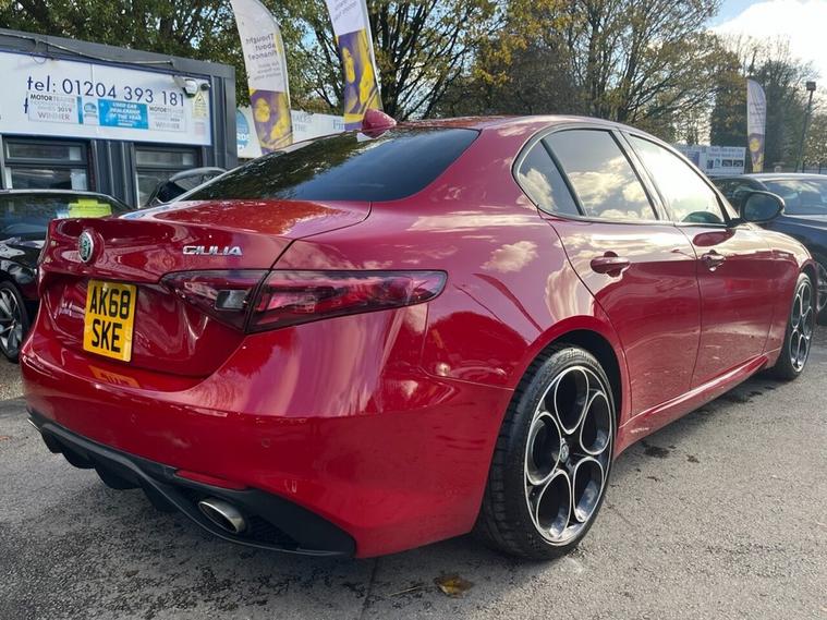 This 2018 Alfa Romeo Giulia T Veloce boasts exceptionally low mileage for its age, having covered just 31, 915 miles. This particular example comes with a full service history, with the last service completed on 21st October 2025 at 31, 553 miles, and a clear vehicle history check for your peace of mind. It is presented in Euro 6 emissions class and includes a 6 month warranty and 12 months MOT provided on purchase. Experience the thrilling performance of the 2.0L petrol engine, capable of accelerating from 0 to 60mph in a swift 5.7 seconds, a figure that sets it apart from many other vehicles in its class. This Giulia Veloce is equipped with a host of desirable features, including mixed fitment tyres, Apple CarPlay and Android Auto for seamless smartphone integration, and a convenience pack featuring keyless entry. The Alfa Connect 3D Nav 8.8in infotainment system with Bluetooth connectivity keeps you informed and entertained, while the heated steering wheel ensures comfort during colder journeys.