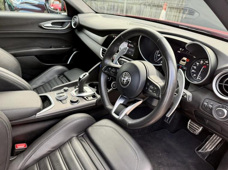 Veloces are pleased to offer for sale this Low Mileage Alfa Romeo Giulia Veloce finished in Classic Alfa Red With Full Black Leather Sports Interior ... A Great Spec Car with 19 Daimond Cut Alloy Wheels with Brembo brake calipers ... Fantastic 8 Speed Auto Gearbox With Beautifully Crafted Alloy Flappy Paddles ... Adaptive Cruise control ... 8.8 in Touch Screen Colour display with Apple carplay / Android auto ... Bi- Xenon headlamps... Dusk sensors ... Convenience pack ... Cold weather pack With Heated Seats & Heated Power-Folding Door Mirrors and Heated steering .. 6-way electric Memory Seats ... Rain sensors ... Lane departure warning ..Rear View Camera ... Alfa DNA switchable Driving Modes ... Full Alfa Service History + Just Serviced..With 280 Bhp On Tap This Really Is An Incredibly Rewarding Car To Drive And If You Want A Giulia As Your Everyday Car Then The Veloce Really Is The Model To Own ...Ask About our Ascari Tuning Upgrade Packages & Low Rate HP / PCP Finance..