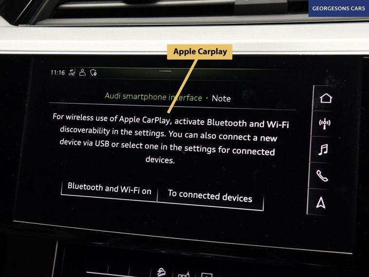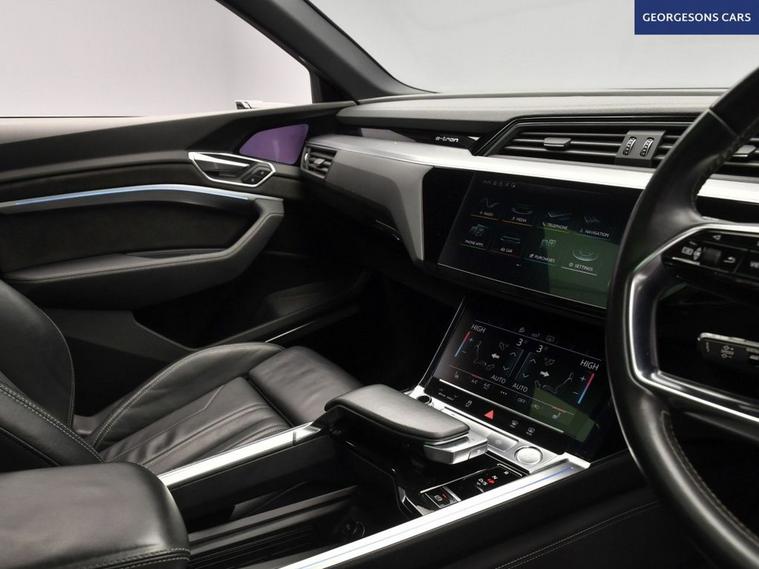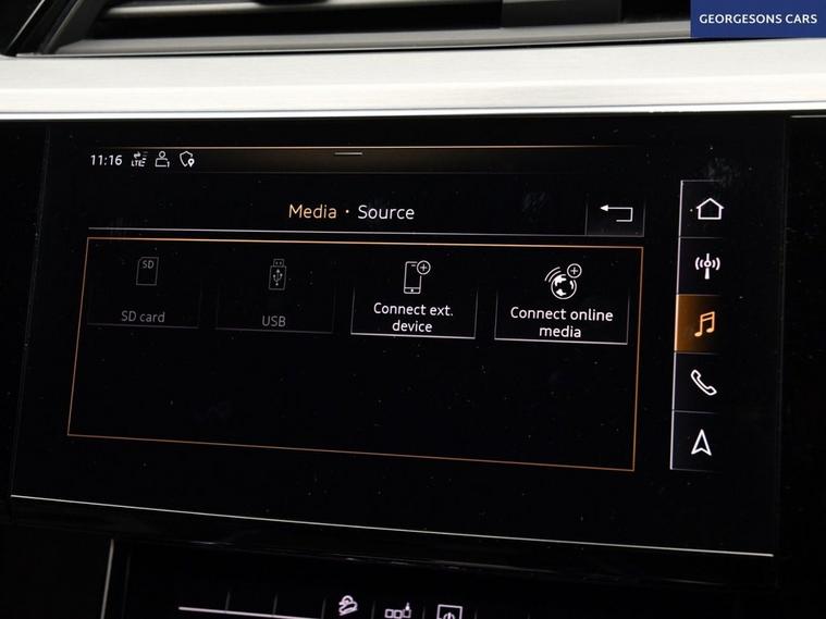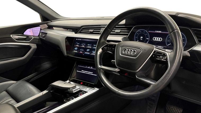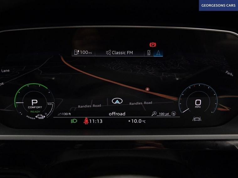 This 2020 Audi e-tron Sportback has been fastidiously maintained within the Audi dealer network at Audi Lincoln from new. The EV battery remains under Audi warranty until 2028 offering peace of mind for the coming years. As this is the higher performance 55 version, the driver will experience a smooth and refined drive whilst accelerating from 0 to 60mph in a swift 5.7 seconds with an equivalent of 408 BHP, demonstrating its dynamic capability. This model comes equipped with over £9000 worth of extras and desirable features, including a Panoramic Glass Sunroof, which looks stylish and creates an airy cabin area and ambient lighting which creates a range of varied looks to the overall interior space. The Comfort and Sound Package enhances convenience with keyless entry and a 360 degree camera for parking assistance. Further enhancing safety and awareness are Virtual Door Mirrors and Audi Side Assist, which includes blind spot assistance. The premium B&O sound system delivers a fantastic acoustic experience and with the Tour Pack extras along with the generous boot space, it is practical for everyday use and longer trips. The orange brake callipers fitted behind the S-Line 21 Alloy wheels subtly add to the overall aesthetic of this stunning looking vehicle. As an electric vehicle with Four Wheel Drive, this S line variant combines advanced technology with impressive performance. It features a substantial 95 kWh battery, providing a maximum range of over 200 miles when new. Charging is convenient as even rapid public charging can take you from empty to 80% in just 40 minutes.