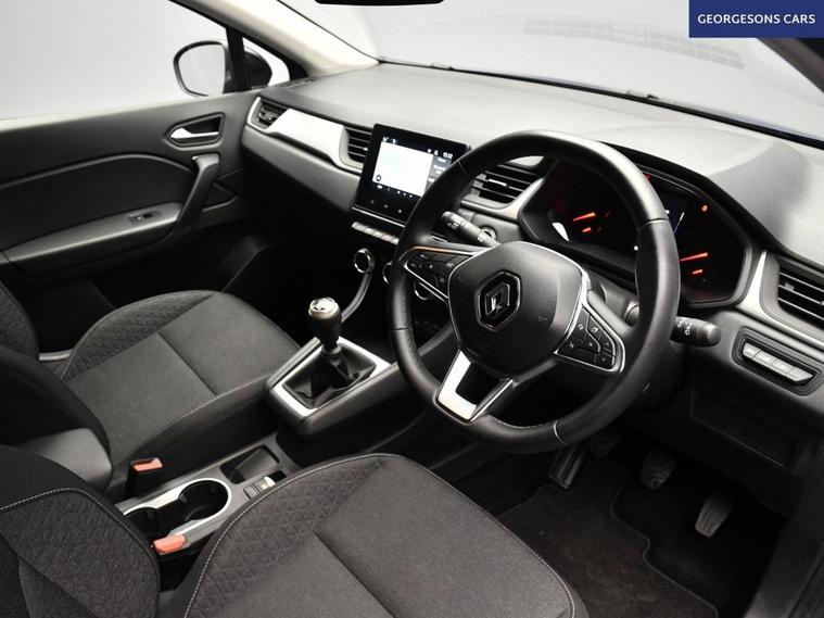 The Renault Captur 1.0 TCe Evolution combines a responsive 1.0-litre turbo petrol engine with 90hp, delivering 0-62mph in 13.7 seconds and up to 55.4mpg in this front-wheel-drive setup with a precise 5-speed manual transmission. The Evolution trim offers stylish versatility with 16-inch alloy wheels and a modern interior for compact urban SUV driving. With one owner and two services, this Captur is in superb condition. Navigate effortlessly with integrated satellite navigation, Apple CarPlay, Bluetooth, and DAB radio, ensuring seamless connectivity on every journey. Parking is a breeze thanks to the parking sensors, providing confidence in tight spaces. Stay comfortable with climate control and air conditioning, offering personalized cooling year-round. Cruise control with speed limiter enhances relaxation on highways, while lane assist boosts safety on varied routes. The spacious five-door SUV design includes a 404-litre boot for practicality.