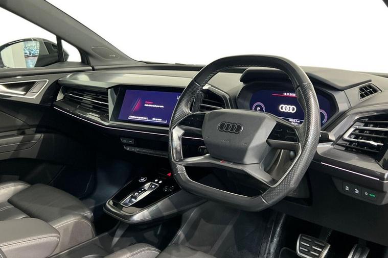 This 2022 Audi Q4 e-tron Edition 1 is a superb example, having had only one owner since new and boasting an MOT valid until February 2026. As a fully electric vehicle, it offers a substantial battery total capacity of 82 kWh, providing a maximum range of 319 miles when new. This Edition 1 variant comes equipped with the desirable Comfort and Sound Package, which includes adaptive cruise control, a rear-view parking camera, and a premium branded sound system. Youll also appreciate the 3-zone electronic climate control, ensuring comfort for all occupants, and the convenience of memory function for the drivers seat and exterior mirrors. The Audi Smartphone Interface, compatible with both Android Auto and Apple CarPlay, keeps you connected on the go, while the comfort auxiliary air conditioning adds another layer of climate control refinement. The impressive 319 mile maximum range highlights how this Audi Q4 e-tron stands out from many other electric vehicles. Charging is also efficient, with a full charge at home using a 7kW charger taking approximately 11 hours and 30 minutes, and the fastest public charging can take the battery from empty to 80% in just 30 minutes. Furthermore, this model offers a large boot space, making it practical for everyday use and longer journeys alike.