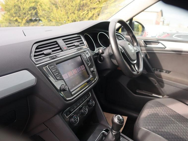This Volkswagen Tiguan TSI SE from 2016 boasts a single owner from new and has a great service history eith the most recent completed at 61K. The Tiguan offers excellent provenance. It features a 1.4 litre petrol engine and meets Euro 6 emissions standards. This SE trim level comes equipped with front and rear parking sensors, including parking assistance, and Bluetooth phone connectivity for seamless calls on the go. Enjoy a comfortable cabin with climate control, and benefit from automatic headlamp activation with a leaving home and manual coming home feature, ensuring you always have visibility. This Tiguan is designed to be economical and practical. Its impressive fuel economy of 49 miles per gallon and low CO2 emissions make it a more environmentally conscious choice compared to many other vehicles. The acceleration from 0 to 60 miles per hour in just 9.2 seconds demonstrates a responsive driving experience. Furthermore, its low insurance group rating suggests lower running costs, and the generous boot space provides ample room for luggage or shopping, making it a versatile option for everyday use. The MOT is valid until October 2026, providing peace of mind.