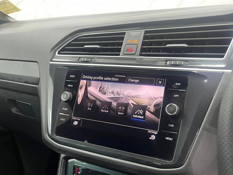 This stylish SUV boasts a 2.0 litre Euro 6 diesel engine, offering an impressive 50 miles per gallon. Its R Line trim level ensures a premium feel, complemented by a full service history and a clear vehicle history check. Youll also benefit from 12 months MOT provided on purchase. Inside, experience the comfort of heated leather trimmed three spoke multifunction steering wheel and gear knob, complete with a heated steering wheel function. This Tiguan is equipped with the Assistance Pack Plus and Side Assist with Rear Traffic Alert, which includes Blind Spot Assistance and front and rear parking sensors, making manoeuvring easier. Stay connected and entertained with App Connect, compatible with Android Auto and Apple CarPlay. Adaptive Cruise Control with Predictive Cruise Control helps maintain a set speed and distance from the vehicle ahead. Furthermore, this model benefits from a low insurance group and low CO2 emissions, indicating it is more economical to run and maintain compared to similar vehicles.