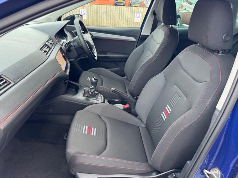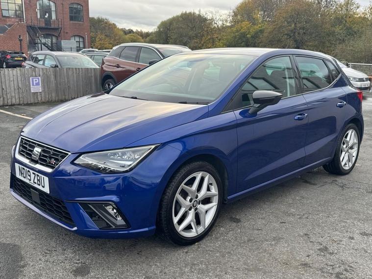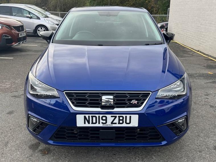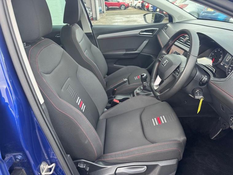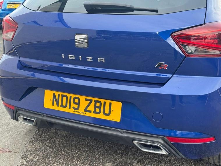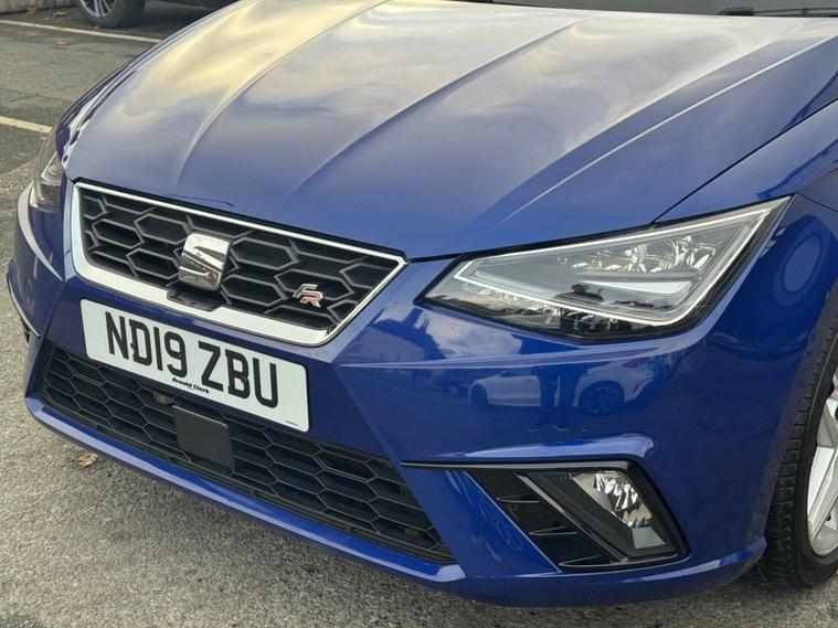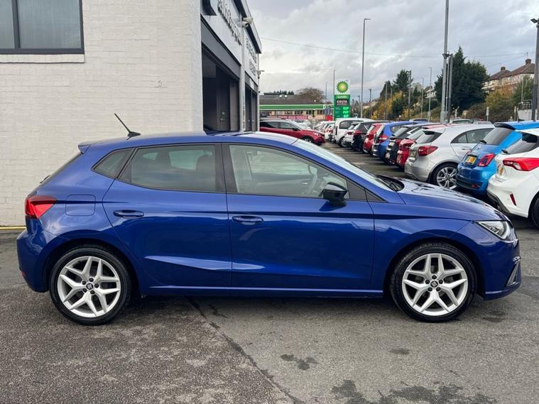 SEAT IBIZA 1.0 TSI FR Petrol in Electric Blue paintwork with 17 Dynamic Alloys. Only 2 owners from new, very low mileage and full service history. Excellent fuel economy and CAZ/ULEZ compliant air zones. Spec includes sat nav, car play / android auto, cruise control, multi-function steering, auto headlights, Bluetooth, electric mirrors/windows, air con, power folding wing mirrors, trip computer and much more. Call 01138032273 or visit dealer's website