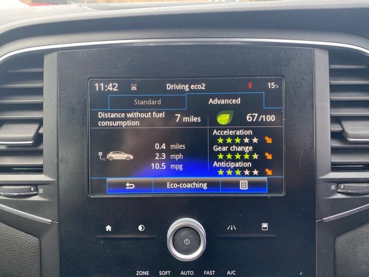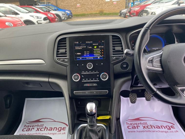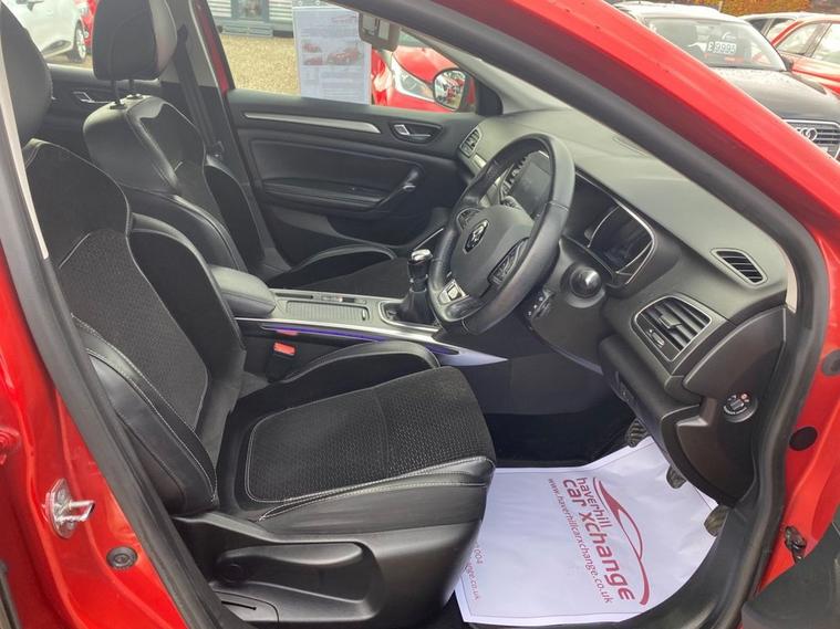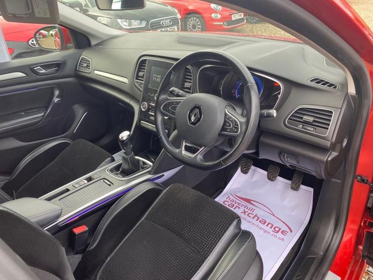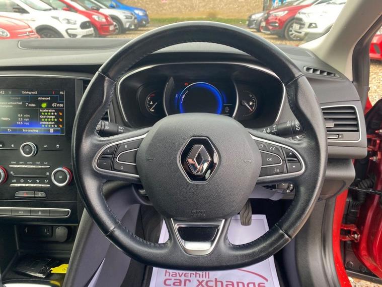 ONLY £20 A YEAR ROAD TAX+LONG MOT UNTIL 21.07.2026+7 INCH TOUCHSCREEN SATELLITE NAVIGATION SYSTEM+DAB RADIO-BLUETOOTH+DUAL ZONE CLIMATE CONTROL AIR-CONDITIONING+AUTOMATIC HEADLIGHT ACTIVATION+RAIN-SENSING WINDSCREEN WIPERS+PARKING ASSISTANCE+FLAME RED PAINT+16 INCH ALLOY WHEELS. At Haverhill Car Xchange we would like to offer you our Renault Megane Dynamique Nav Hatchback which has been finished in a metallic Flame Red paint with Black half leather and cloth upholstery. Excellent Specification Includes a 7 Inch Touchscreen Satellite Navigation System, Arkamays 3D Sound System-DAB Radio-Bluetooth-USB Connection, 12 Volt Power Socket, Automatic Dual Zone Climate Control Air-Conditioning, ECO-Mode, Cruise Control and Speed Limiter, Front and Rear Electric Windows, Body Coloured Bumpers/Door Handles/Door Mirrors and Rear Roof Spoiler, Automatic Headlight Activation, LED Daytime Running Lights, Front Fog Lights, Automatic Windscreen Wipers, Parking Assistance, Multifunction Steering Wheel, 16 Inch Alloy Wheels, Power Assisted Steering, Hill Start Assist, ABS Breaking System, Airbags, Alarm, Immobiliser, Remote Central Locking and ISOFIX Anchorage Points for Child Seats.